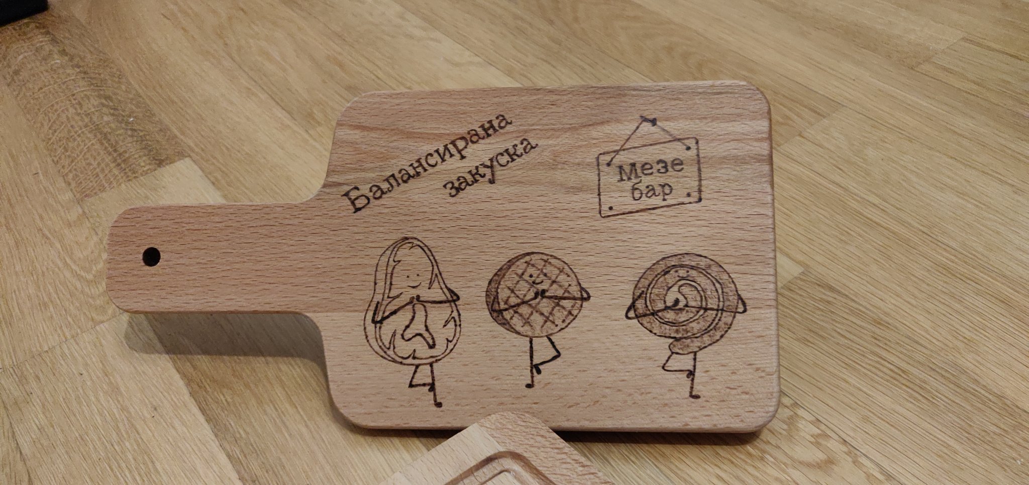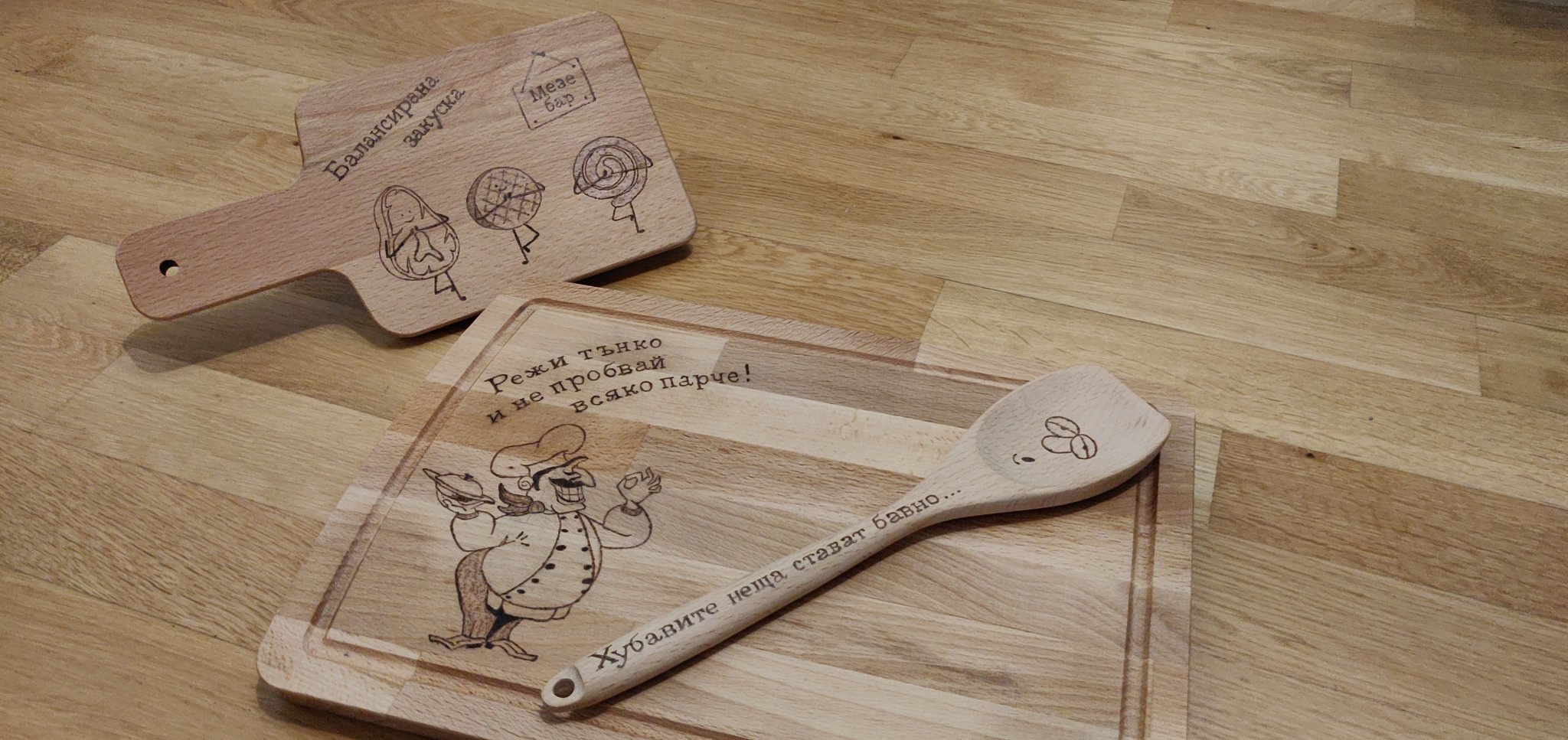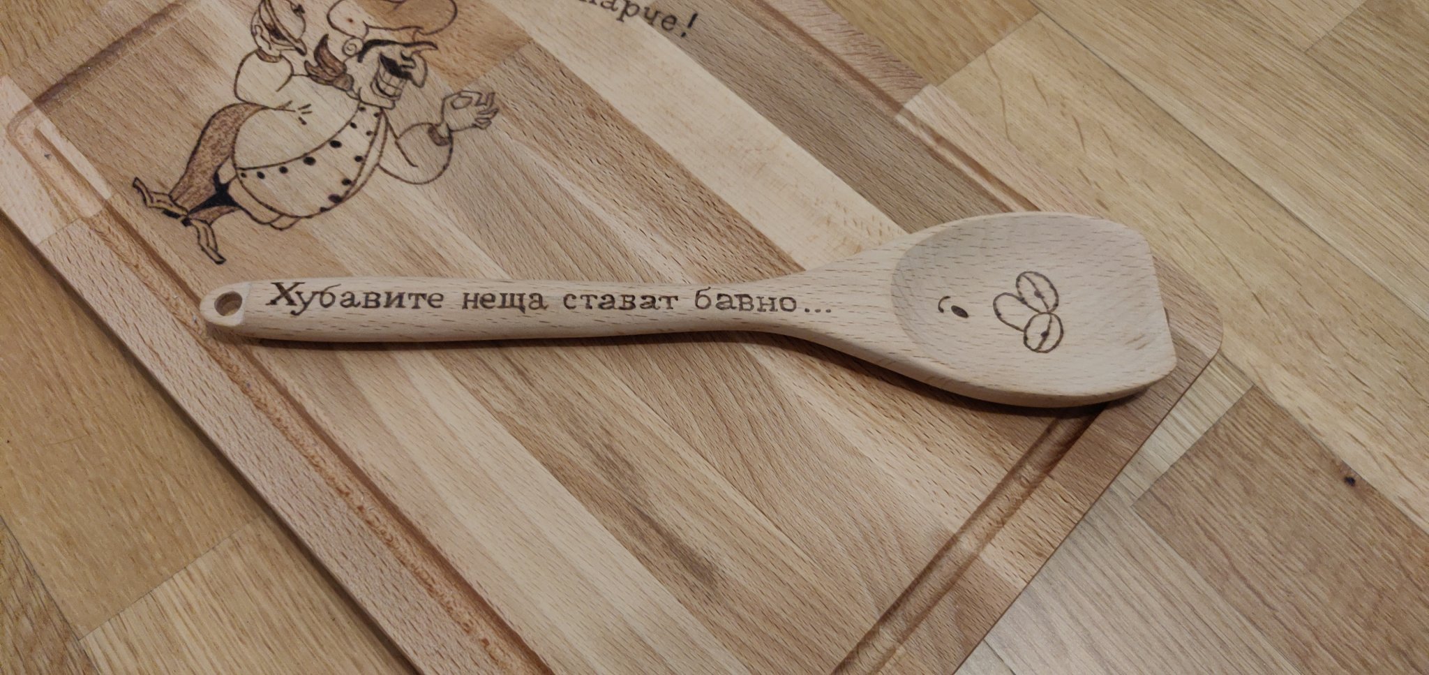 Дъските и лъжицата са от Икеа, каквито серии имат в момента... Другото го рисувах (пирографирах, де) днес.