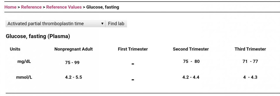 Референтни стойности на глюкоза за небременни и за втори и трети семестър