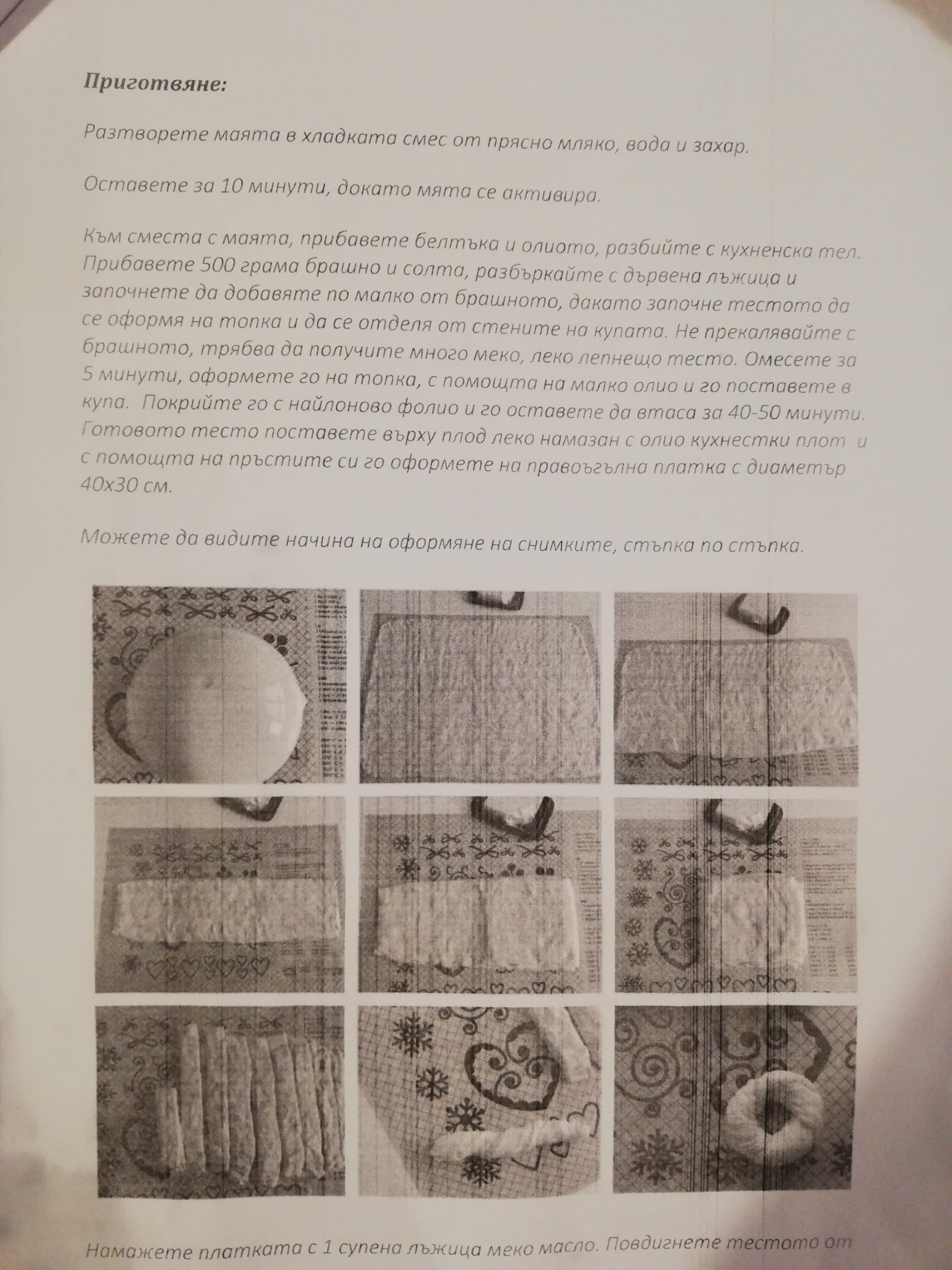 брашно Шер микс Б около 500-600гр. до гъсто лепкаво тесто.