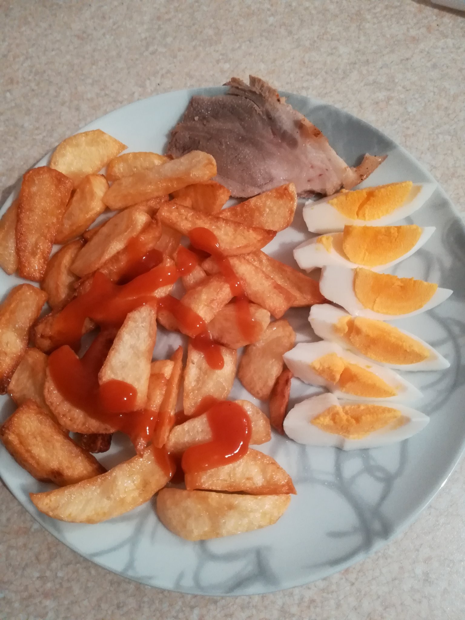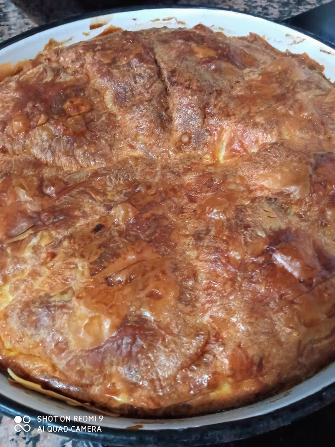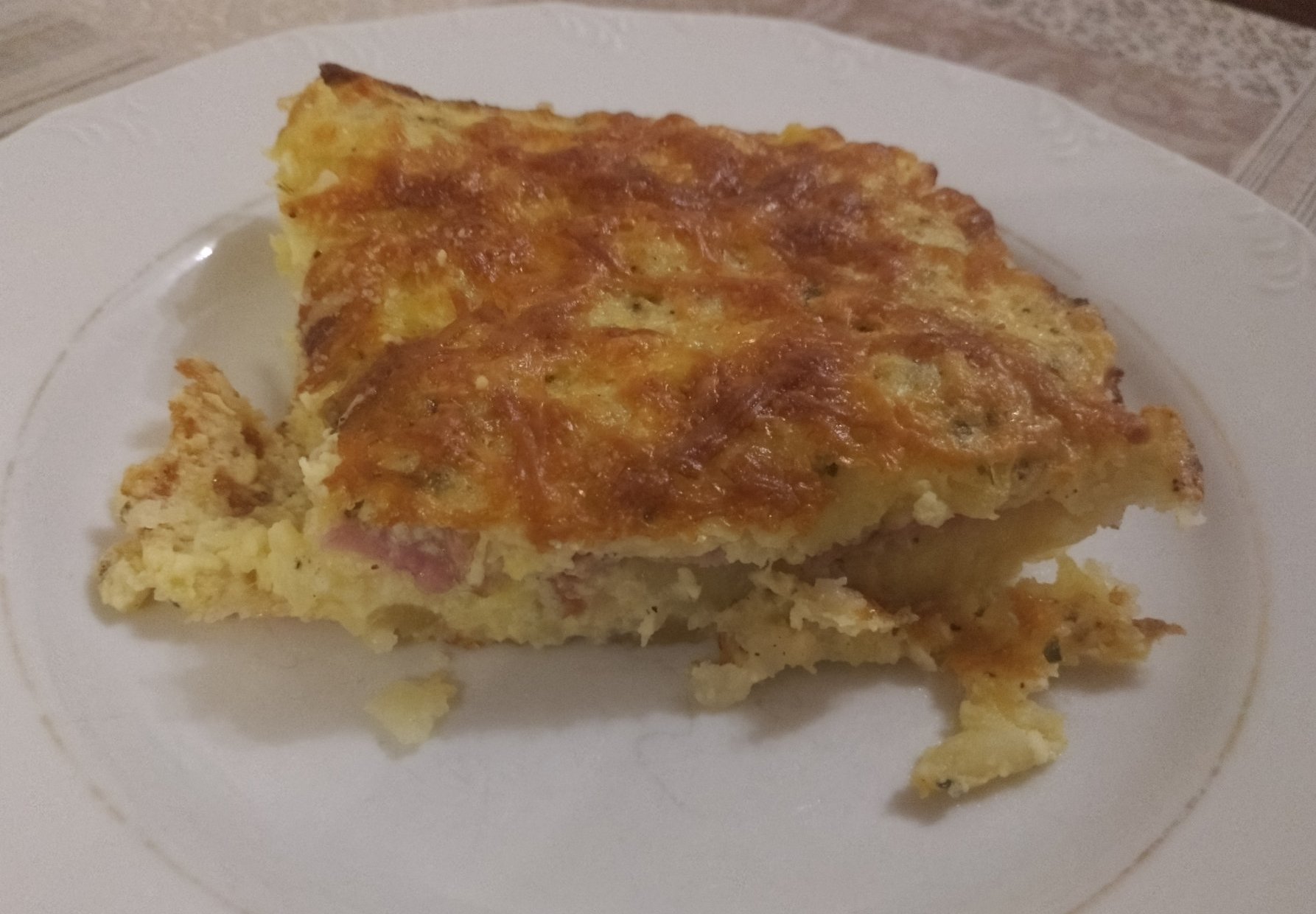 Нещо като омлет на фурна с картофи и филе и кашкавал в средата