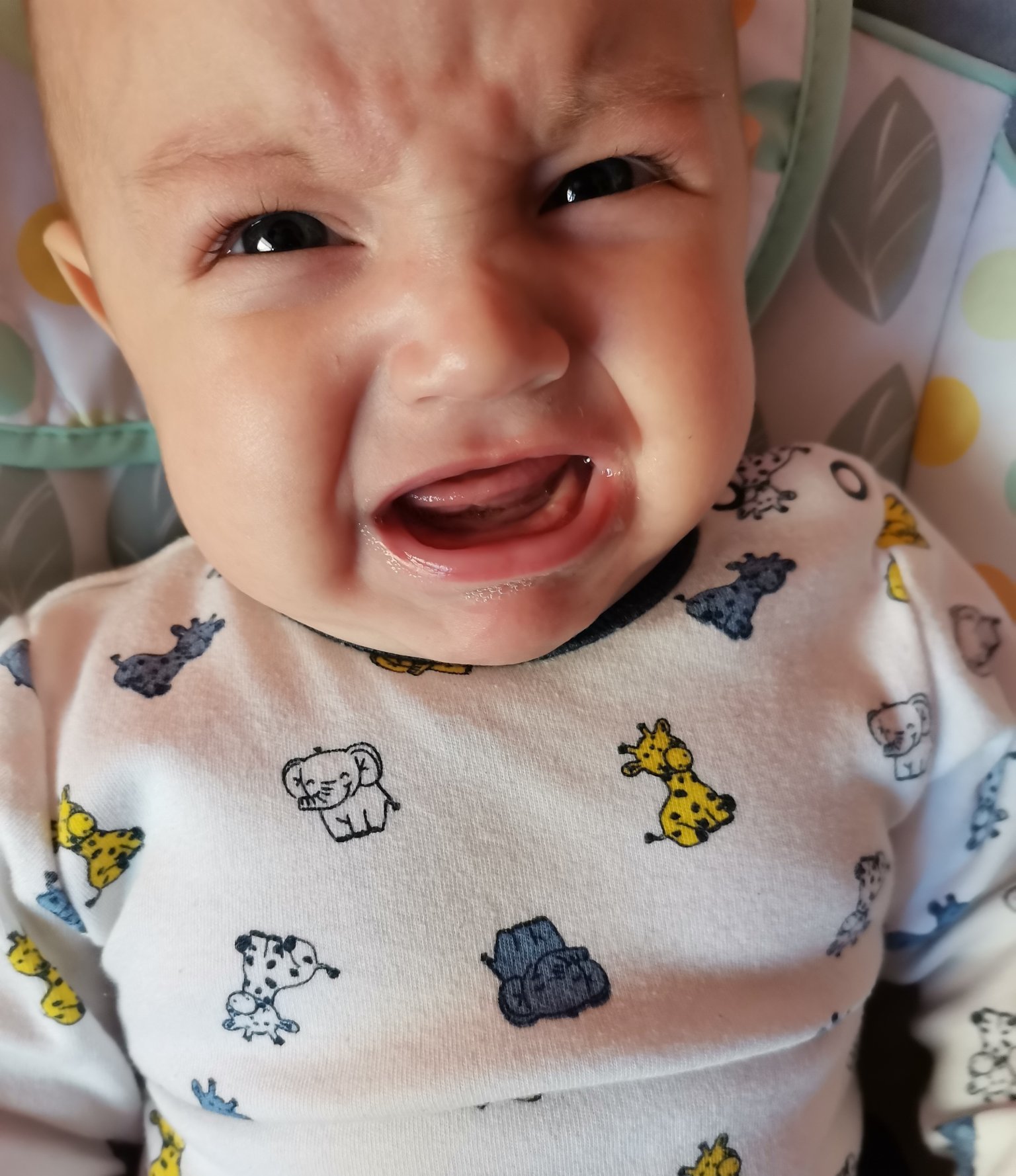 Почна да реве и гледам аз долу в ляво нещо се белее, помислих си, че е афта 🤔 та нали имам опит с две деца и знам, че зъбите са около 6-тия месец... Пипнах и като ме драсна разбрах, че не е афта. Последваха още няколко опита да видя какво има там, защото е на мястото на кучешкия зъб 😵 Еми... Прилагам резултата да видите и вие