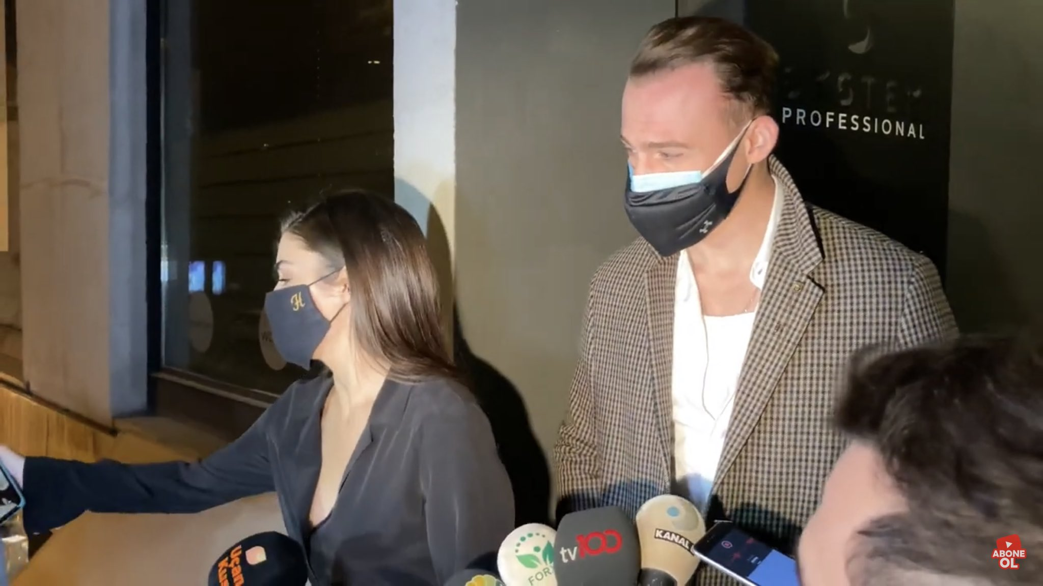 Били заедно, защото имали снимки. Питат ги какво правят напоследък, те казват, че са изморени, защото снимат много дълго време. Майката на Керем е била на сета на посещение и там са се видяли с Ханде. Питат Керем за някакъв пост, но не разбрах добре. Май питаха Ханде дали е съгласна с посланието към въпросния пост. Питаха ги за Измир. Керем каза, че е много оскърбен от случващото се, Ханде се съгласи с него. Снимат ги, Ханде каза, че трябва да тръгва защото я чакат и така. Не разбрах накрая какво се провикват момчета от улицата зад тях, май каката на едното била влюбена в Керем Grinning