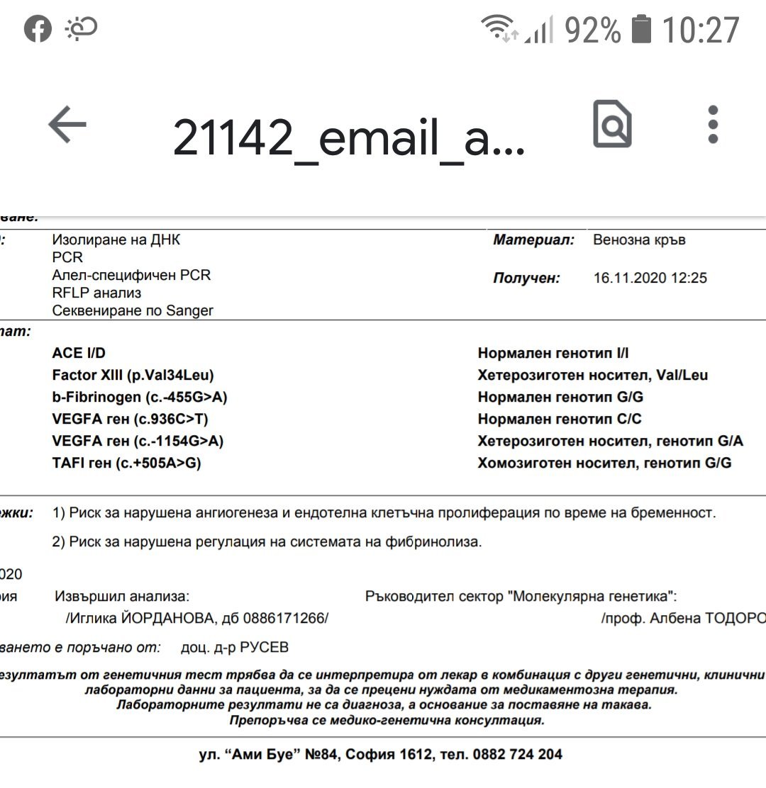 Аз съм хетерозигот по двете вегфа и тафи и съм с 4г5г, хетеро за 13, хомо за асе и съм на клексан от трансфер.