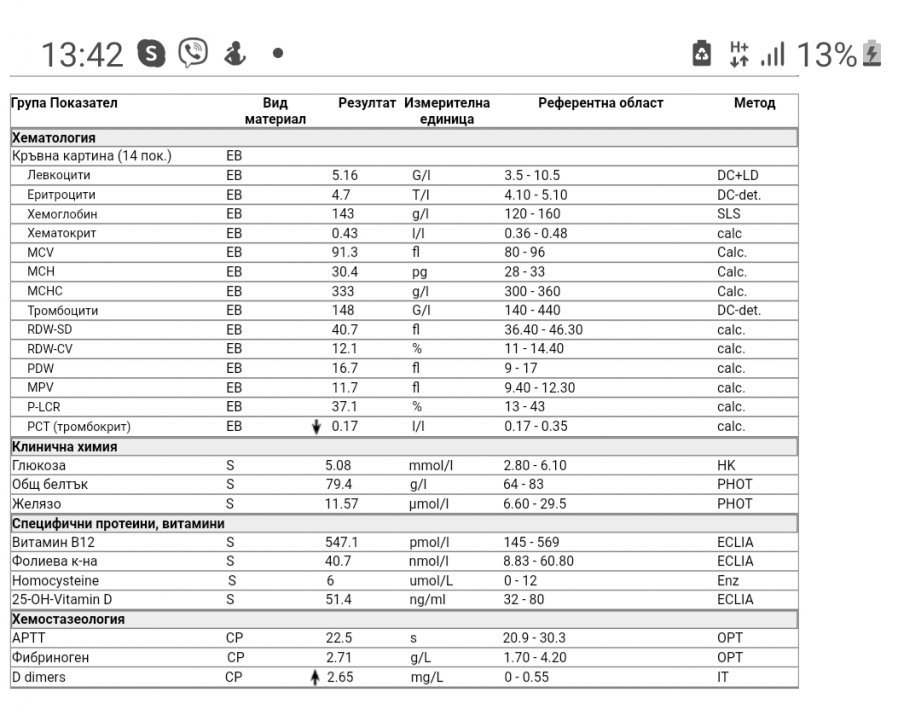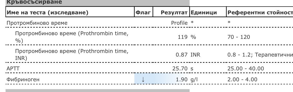 Утре сутринта мисля да си пусна протромбиново време,фибриноген,АРТТ и D Dimer.