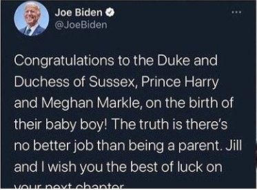 Байдън са поздравили Меган и Хари за раждането на Арчи: