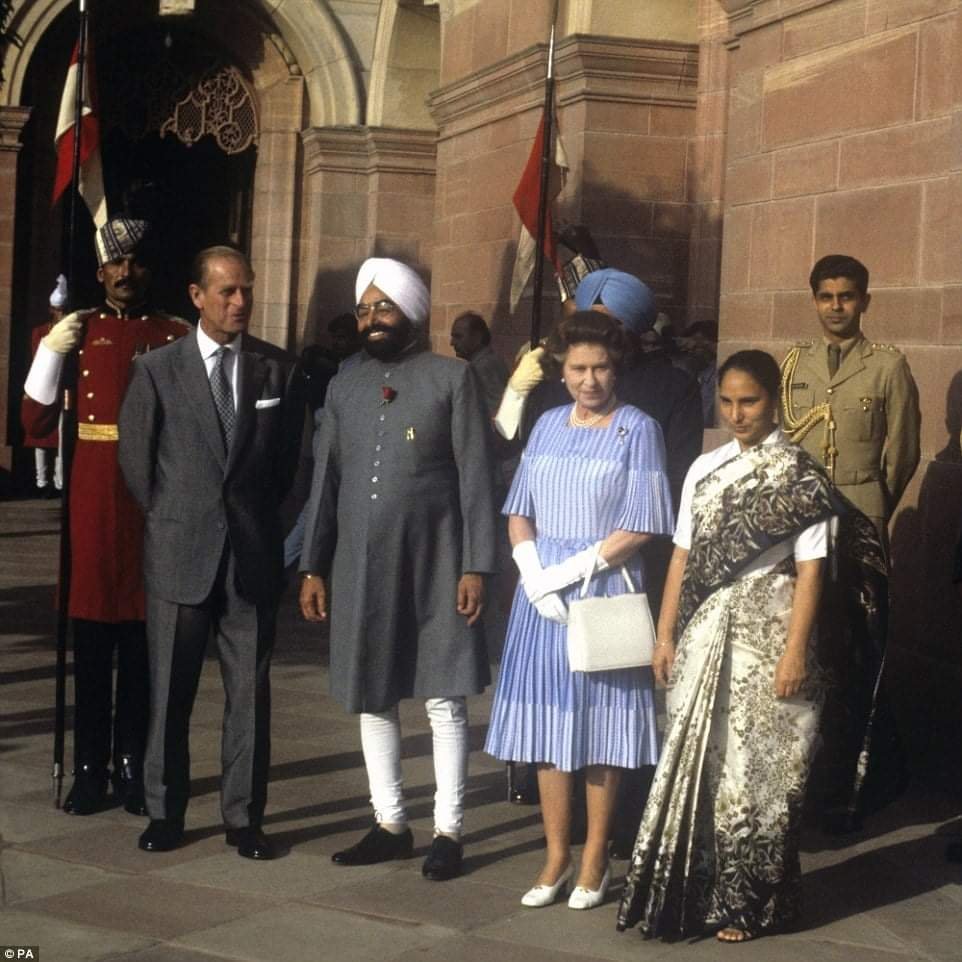 17 ноември 1983 г .: Нейно величество кралица Елизабет II от Обединеното кралство Великобритания и Северна Ирландия и нейният съпруг Н.Пр. Херцогът на Единбург направиха първото си посещение в Индия от 22 години насам. Те са на снимката с индийския президент Зайл Сингх в двореца му в Ню Делхи. По време на посещението си в Индия кралицата посети и Калкута, където представи Ордена за заслуги на майка Тереза ​​от Калкута. „Кралицата посещава Ню Делхи, 1983 г.“ (ВИДЕО) - чрез Кралското семейство: https://www.youtube.com/watch?v=3PAvK8SVURg