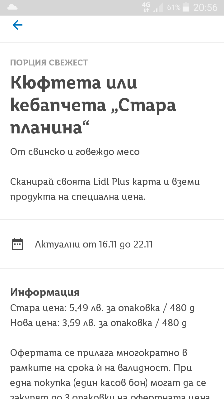 Аз ходих следобяда и беше някаква пълна лудница. Побъркаха народа с тоя коридор, то не можеш да се разминеш. Накрая касиерката не ми отчете отстъпката на кюфтетата и си ги взех два броя за 10 лв. Халал да са ѝ. Пет пъти питах отчело ли е Лидъл +, дааа отчело е. Е наистина имам белекжа в приложението, ама не на промоционалната цена. Почват да ме изнервят и мен вече с тези чести “грешки”. На опашка имаше сто човека и реших да не се връщам, малкия чакаше в нас да яде и той и бързах. Взех си меденките на РС за утеха, ама нищо осбено не са ми. Абе отвратителен пазар беше, а преди с кеф ходех там.