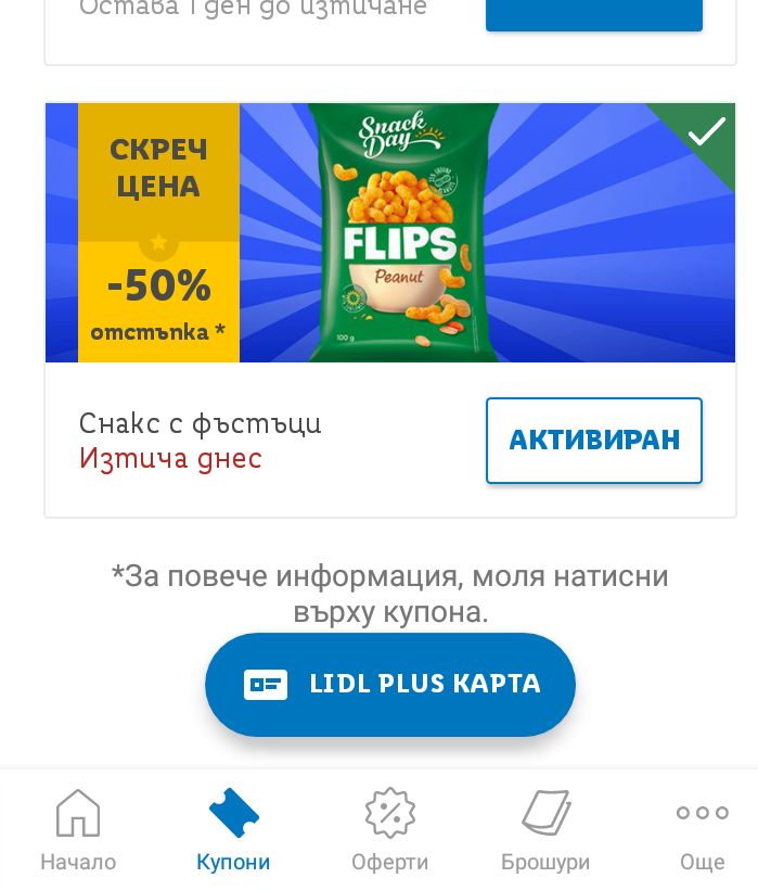 Да се оплача, взех снакс с фъстъци- трябваше да е намален с 50% с купона от скреч картата и въпреки това 2 пъти не мина с приложението...и накрая го върнах. А и двата пъти чух звуков сигнал, и купонът за намаление си стоеше...Вярно, изтича днес, но за да се появява като "активиран" би трябвало да е валиден все още...Не че ми беше за 50 ст. намаление, но въпросът е принципен Grinning