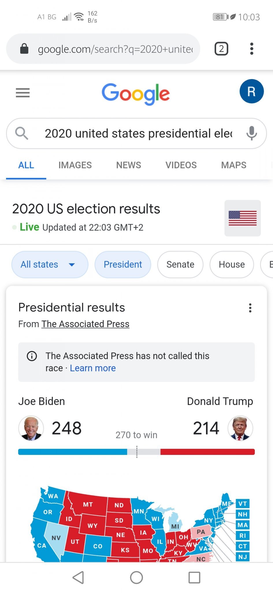 Аз не разбирам разликата, която има при cnn (237) и Гугъл-Асошиейтед прес (248) за Байдън. Но много ми харесва как визуално ясно се отразяват резултатите.