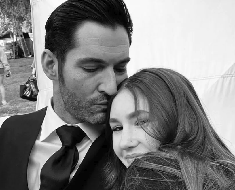 Луцифер излиза от колата, отваря вратата на Клои и й подава ръка