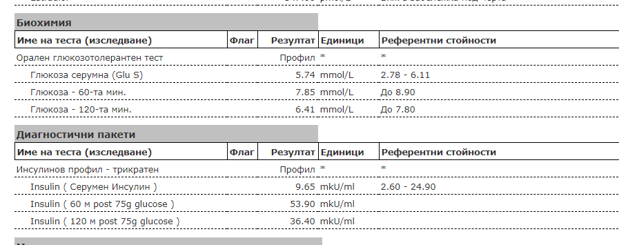 Елора, направих го, защото исках да го изключа като причина за поликистозата, и най-вече защото  ми изпопада косата, та исках да видя дали Метформин би бил полезен. Преди съм си пускала Инсулин без натоварване  и е било около 9, сега нещо се беше смъкнал с последните изследвания, но съм чела тук във форума за хора с около 9 и винаги коментарите бяха, че верочтно имат ИР. Та водена по това и аз реших да проверя как е.