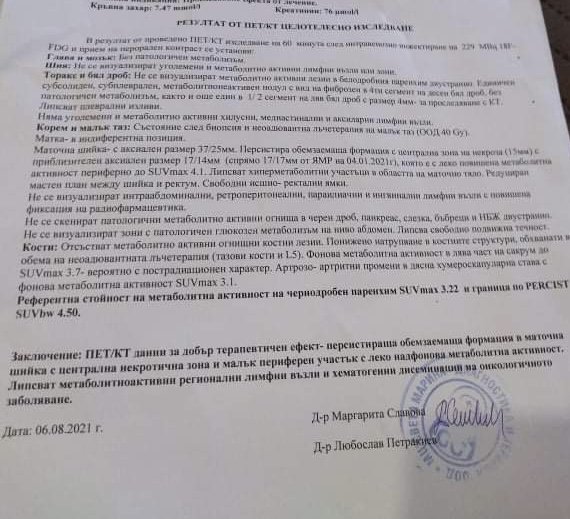 Здравейте това се еезултатите на моята майка от ПЕТ скенер т.к.  е н доктор чак през следващата седмица дали някой може да изкаже мнение по тях