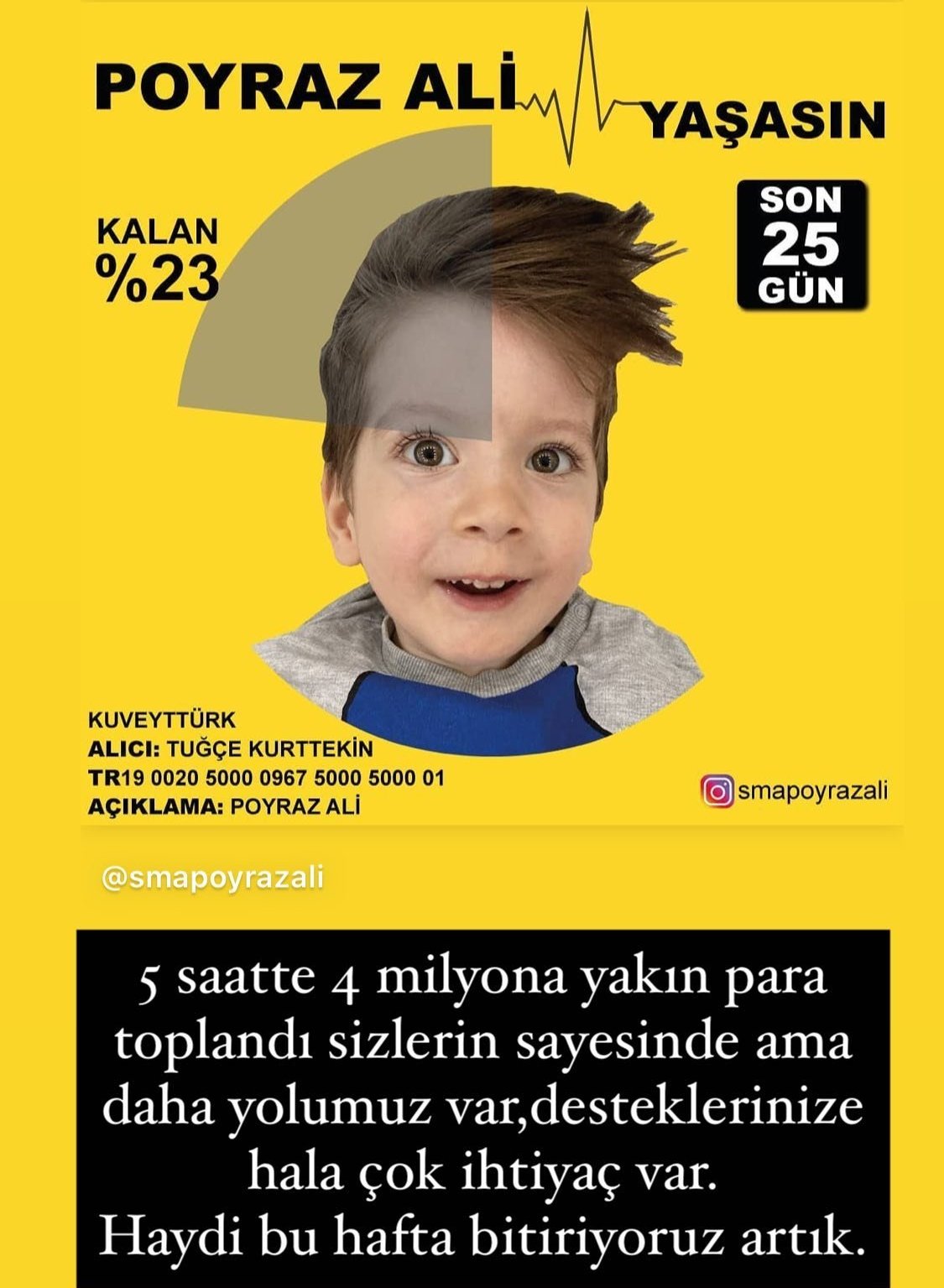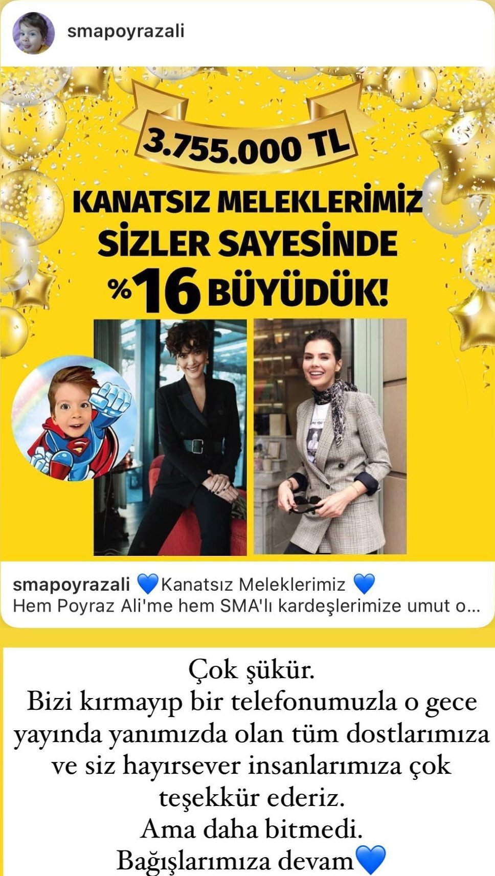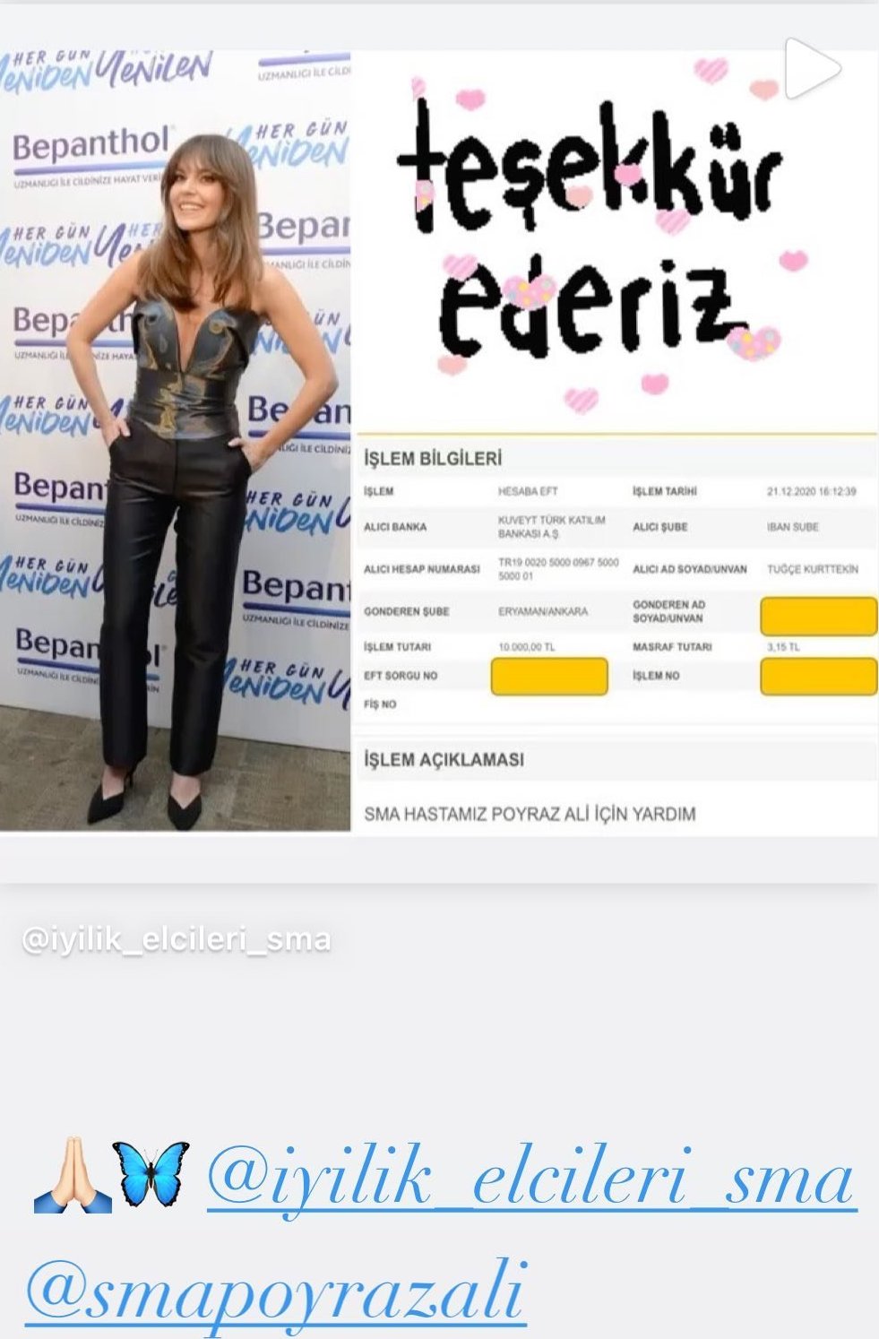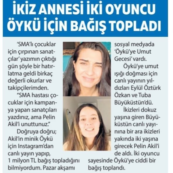Туба Б. е последвала призива на Берг за участие в кампанията и е провела 3-часово предаване на живо в ИГ в неделя /следя я, но съм пропуснала ефира/. Не намерих информация за събраните пари за Öykü Semra, но журналистът Али Ейюбоолу е публикувал кратко съобщение за ефира на Пелин Акил в който е събрала 1 млн ТЛ за същото дете. Тя участва и при Берг и Хатидже, включила се е и при Туба. Боран също.