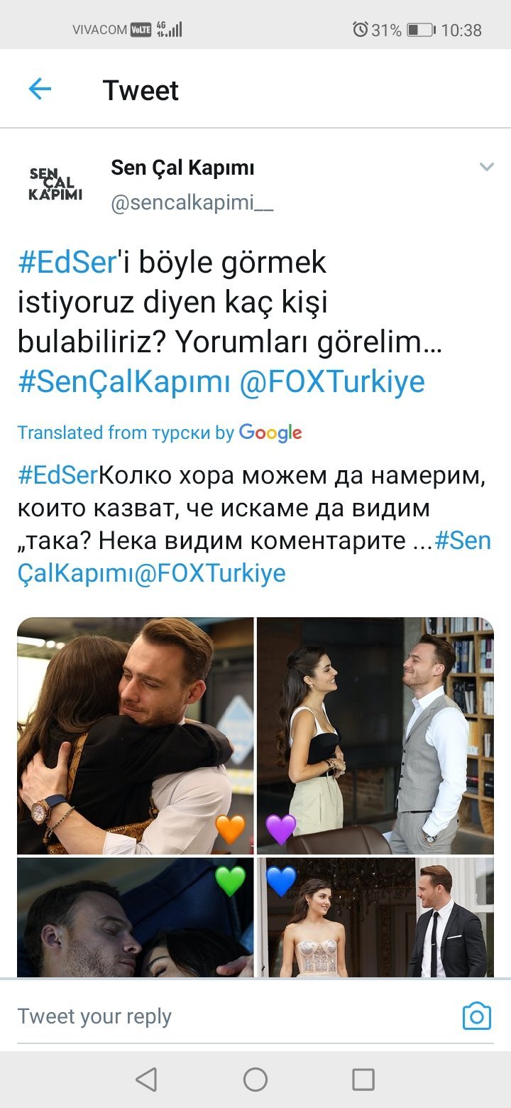 Добро утро,на всички Вас,събуждам се и чета,не зная като вас да намеря новини за нашите любимци,за филма,всъщност това е може би 5 или 6 турски филм който гледам.Причината е може би че по телевизията излъчват драми,а те определено не са ми по душа.Откривайки романтичните комедии искрено се забавлявам,и разболявам от пристрастяване към филм който ме грабва.Но сега искам да Ви благодаря на всички,за преводите,за новините,за клиповете,и за това че четейки ви разширявам видяното,възприемам го и от друг ъгъл,с Вашите споделени мисли за мен всяка серия се превръща в 3Д филм .Хубав ден ,приятна почивка и да се радваме на още много интрегуващи епизоди с нашия сериал.