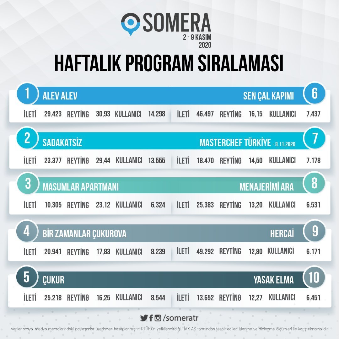 "Sen Çal Kapımı беше шестата най-популярна програма в социалните медии миналата седмица."