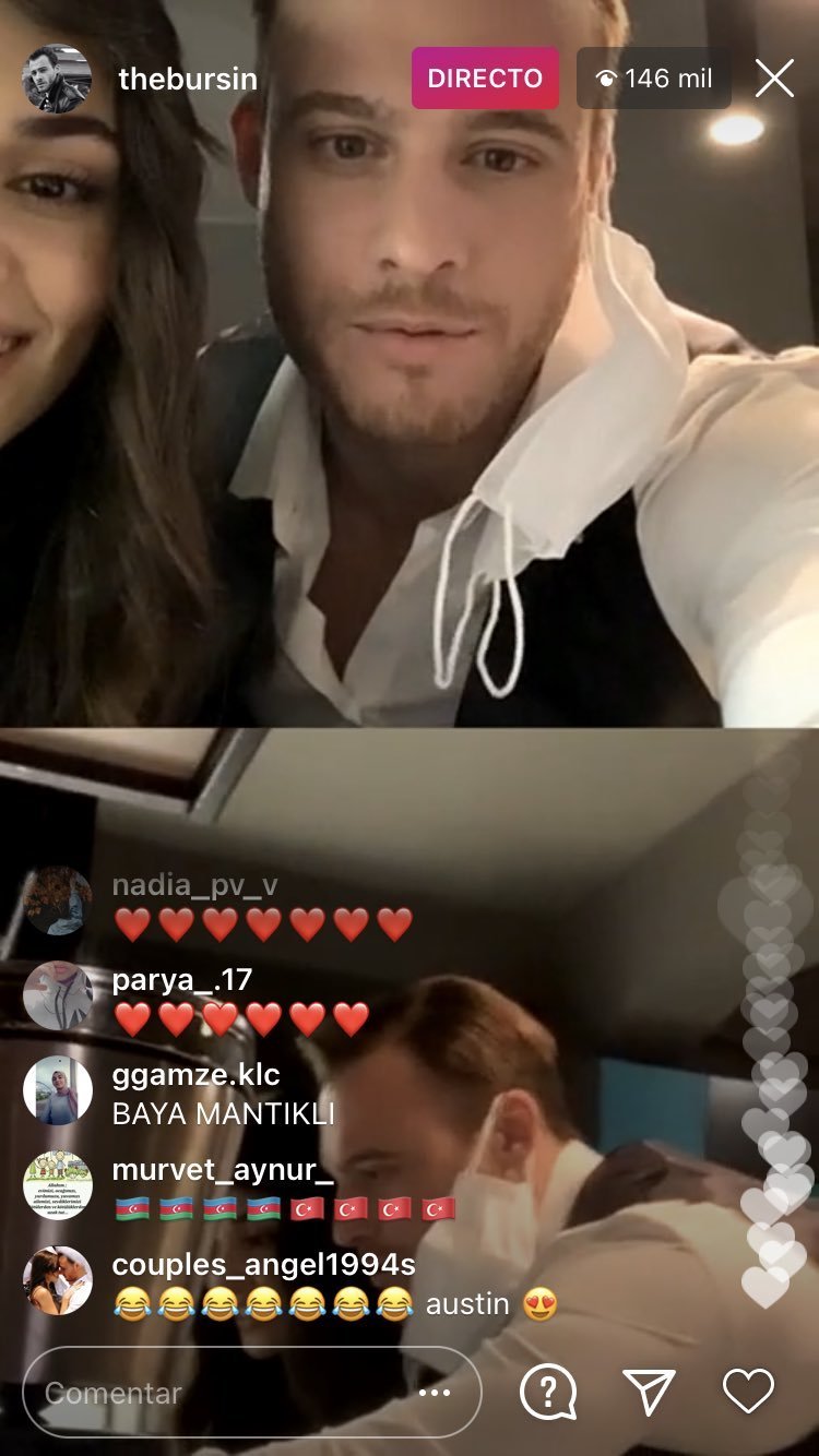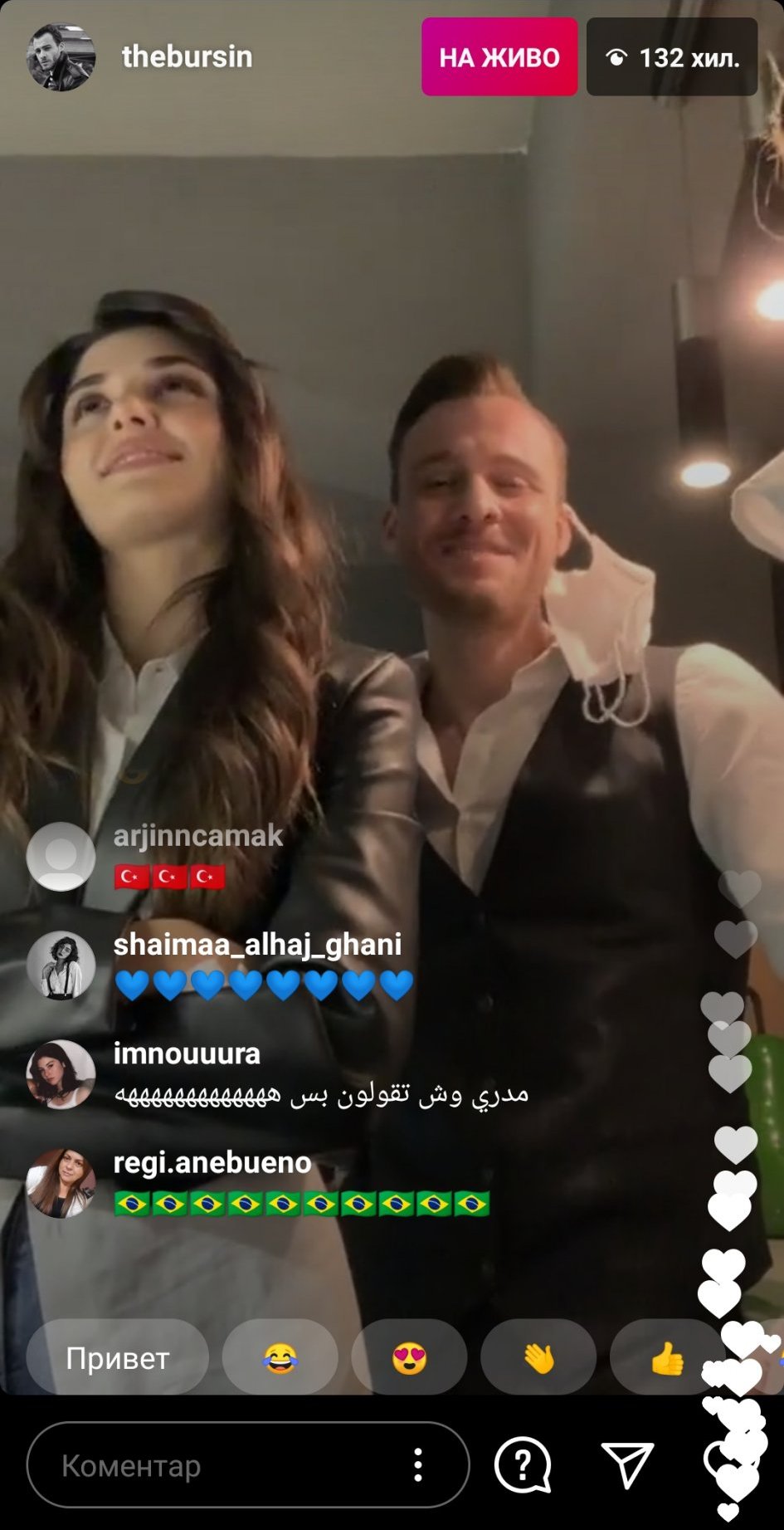 Ужасно сладки бяха. Включиха фен към лайфа /уж щели да пробват да го правят често/ , момичето ги пита дали са двойка и в живота..VV Засмяха се и Керем каза "А въпрос свързан със сериала имаш ли"