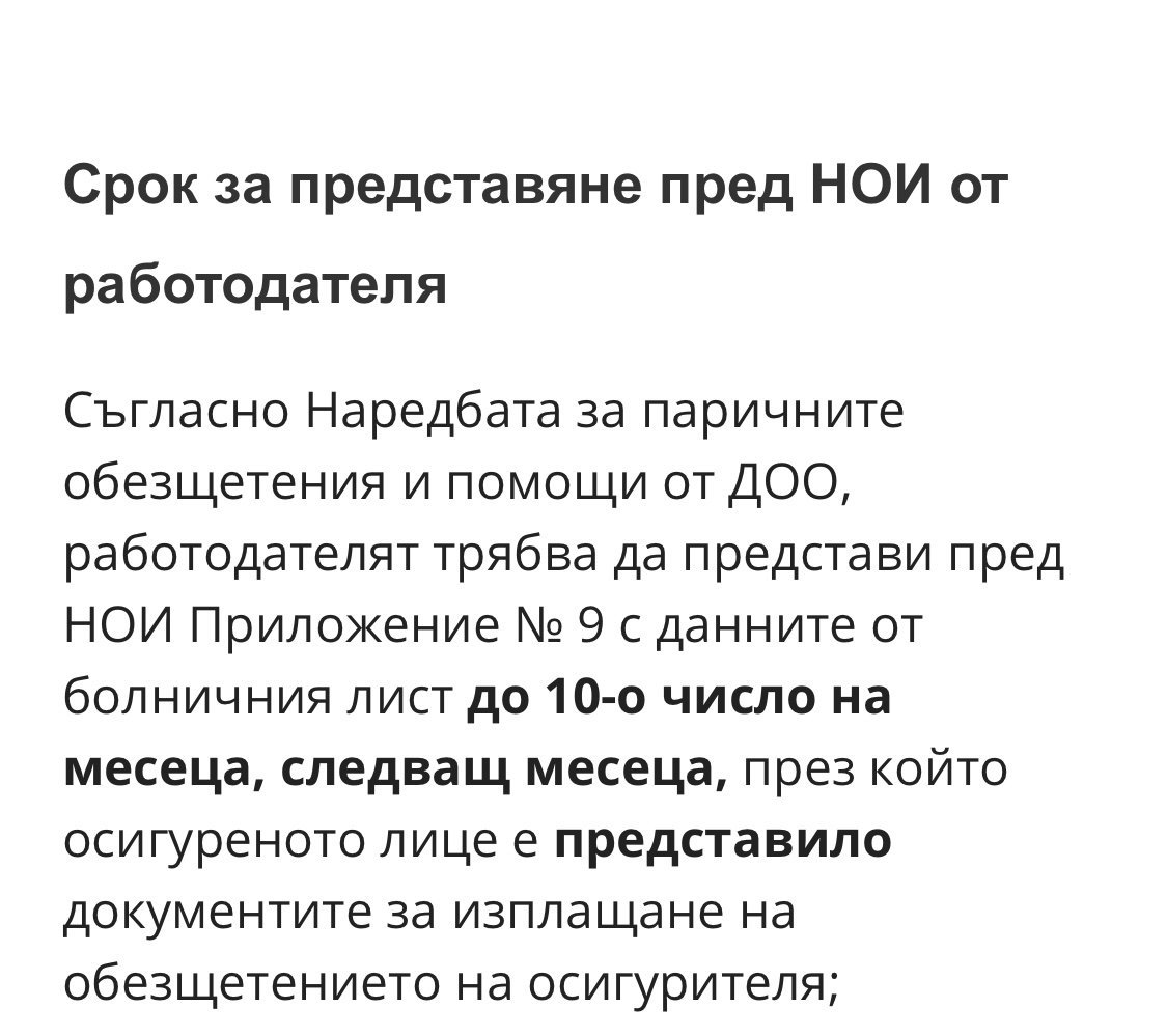 Здравейте, едно бързо питане - в момента съм в болничен 45 дневен преди раждане, а самия болничен стартира от 15 декември. Все още не виждам да е отразен в системата на НОИ, което малко ме притеснява, защото до сега веднага след подаване от работодател го виждам качен в системата. Под календара на НОИ чета, че "Обезщетенията, отнасящи се за периоди по-дълги от един