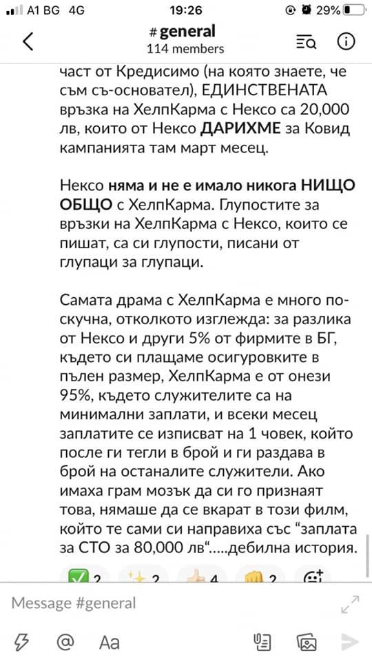 Шефа на Нексо бързо се опита да се разграничи вчера и да ги оправдае, че всъщност всички залати се превеждат на един човек и след това се плащат на хората, но не знае защо не са го казали. Дори и това да е истината изглежда като избягване на данъци или нещо друго.