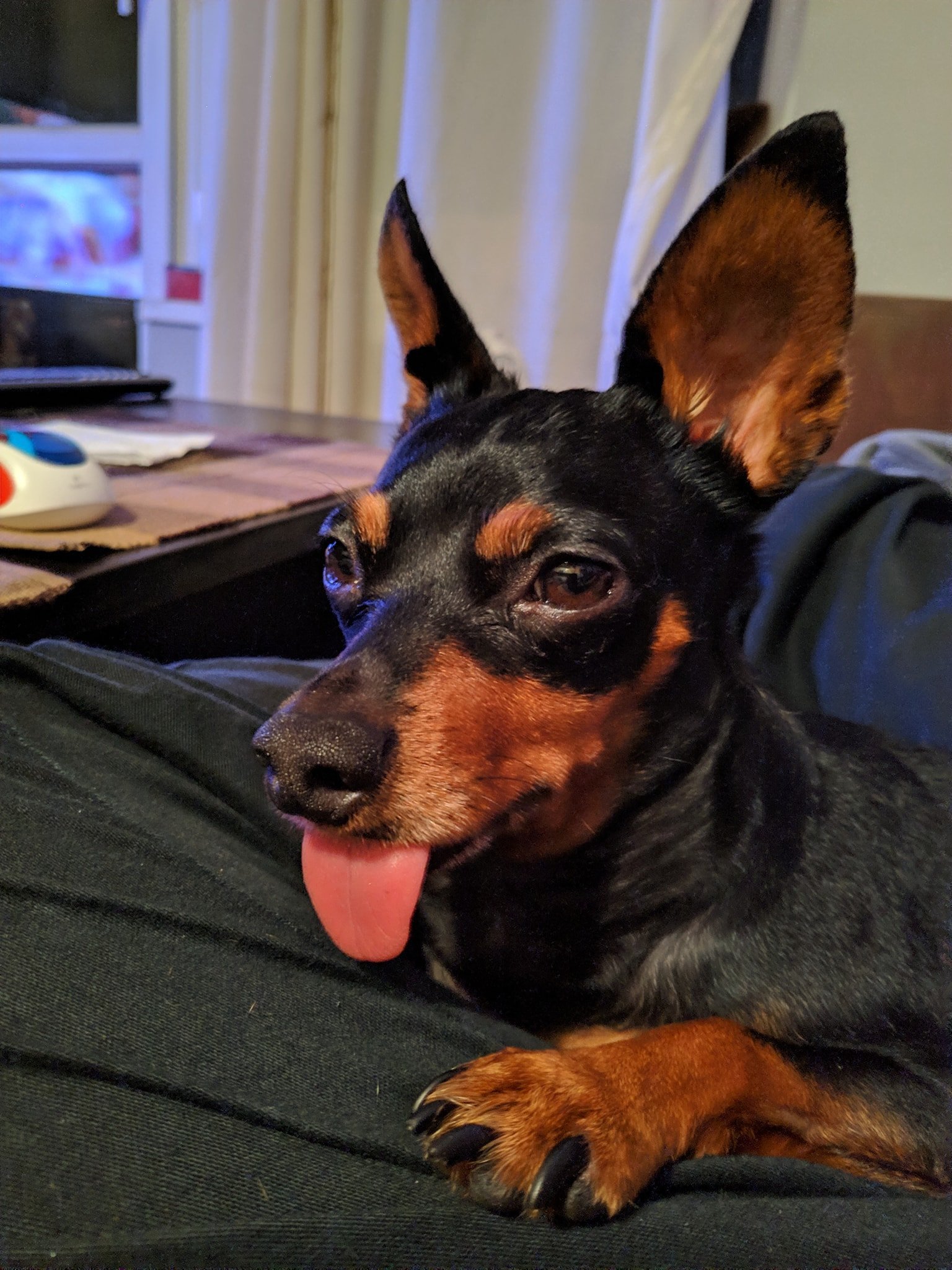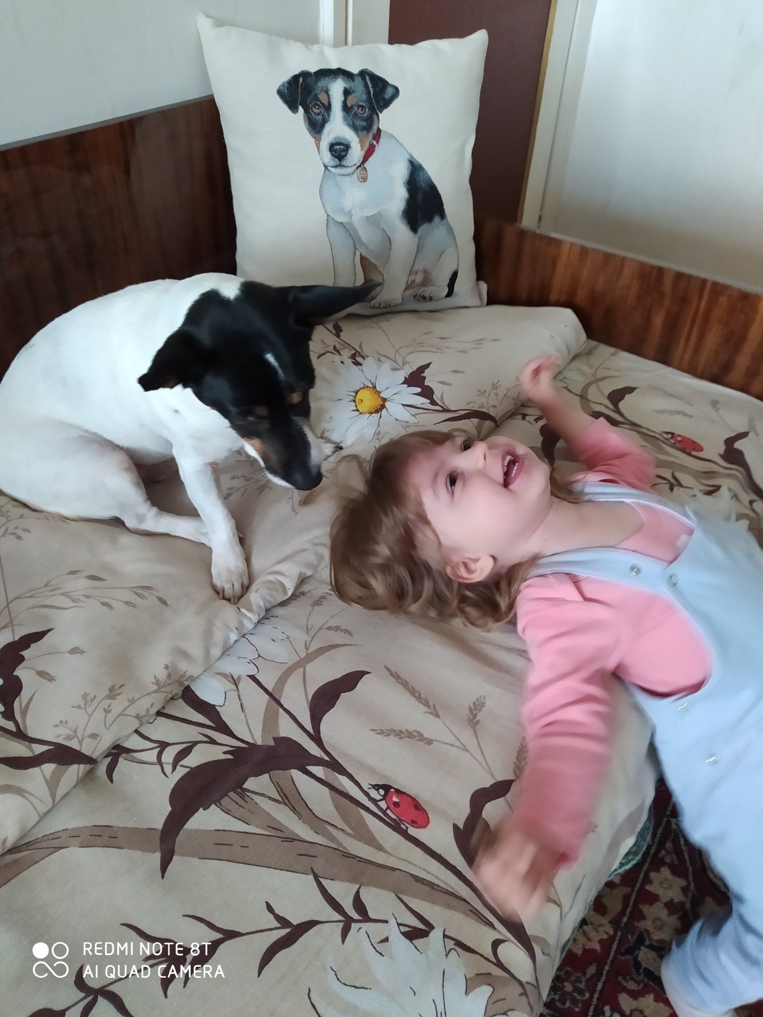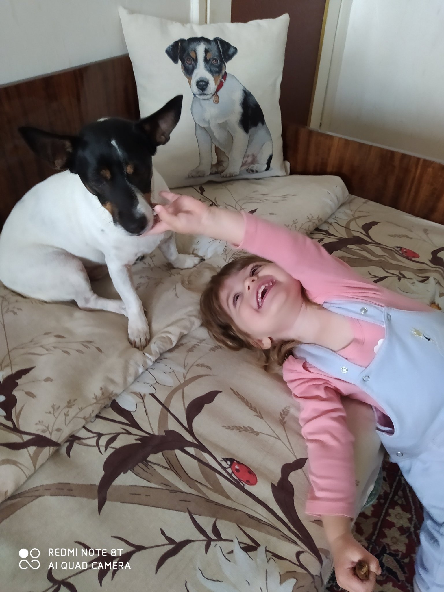 (при по големи кучета ляга по гръб и вирва крака нагоре и седи като застреляна)