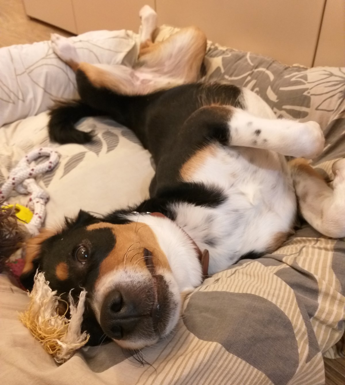 Странно ми е как съхне толкова бавно гадината. Уж са ловна водна порода, а козината бая време й трябва, докато изпръхне и стане суха.