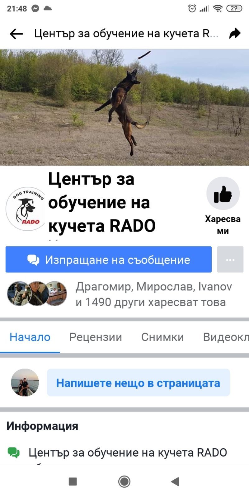 Потърси във нета и фейса Ина Хаджиева и курсовете й Моето куче и в новото студио, което откриха - Жълтото куче. Не веднъж съм писала за нея. Отскоро заедно с нея има дипломиран треньор и още едно момиче. Само добро ще видите и получите от тях.