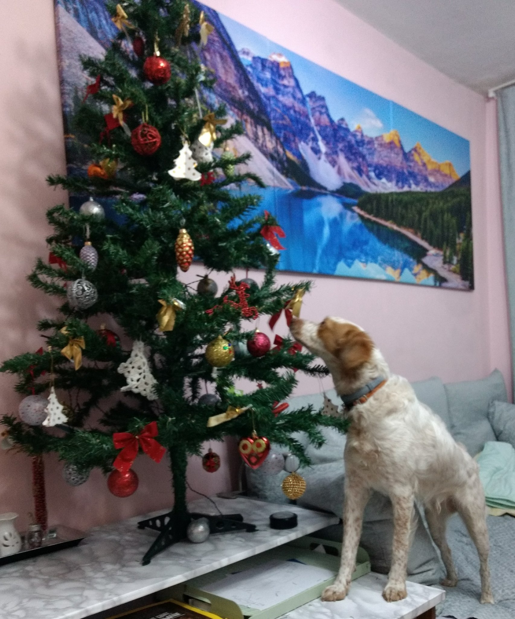 "Аз,такова,пак реших да инспектирам елхата.Ама тоя път не я съборих и не ми се караха,че и подарък получих"