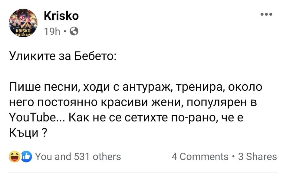 В Бебето никога не съм "чувала" Криско. Беше ми интересен като образ, жалко че отпадна!