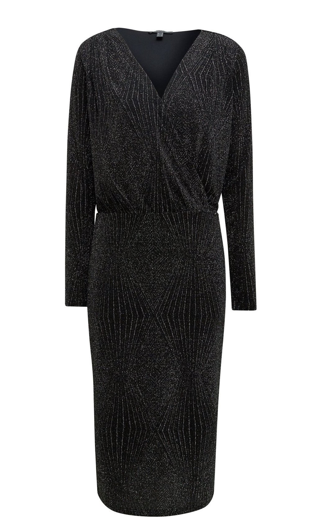 . Ще я комбинирам с високи велурени обувки в тъмно розово, дълги обеци, тънък черен колан и грим в розово-лилаво-сребристо с лимитираната Коледна палитра и Метеоритите с цвят шампанско на Герлен.
