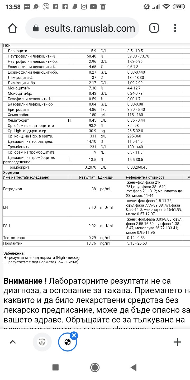 Здравейте , това са ми резултатите от изследванията без прогестеронът. Не разбирам много , но се опитвамд а забременея и така като гледам май има проблем с хормоните заради което не става , някой може ли да разчете ? Благодаря