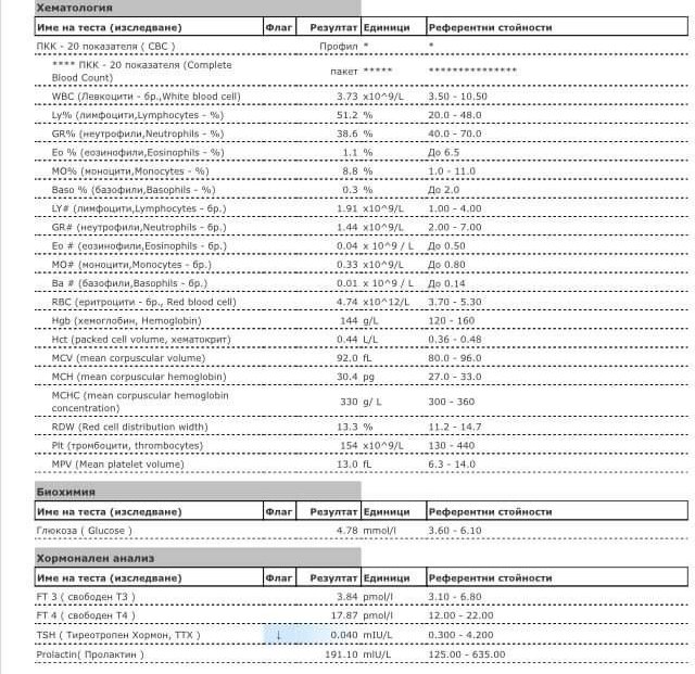 Здравейте. Писах и в другата тема. Има ли нещо притеснително в тези резултати? Миналата година имам операция заради извънматочна бременност. Тази година преди да подновим опитите се опитвам да изследвам колкото може, повече неща. Досега резултатите са: чиста МБ, отрицателни микоплазми, уреаплазми и хламидия, а това са и щитовидните хормони. През февруари ми предстои и цветна снимка на тръбата.