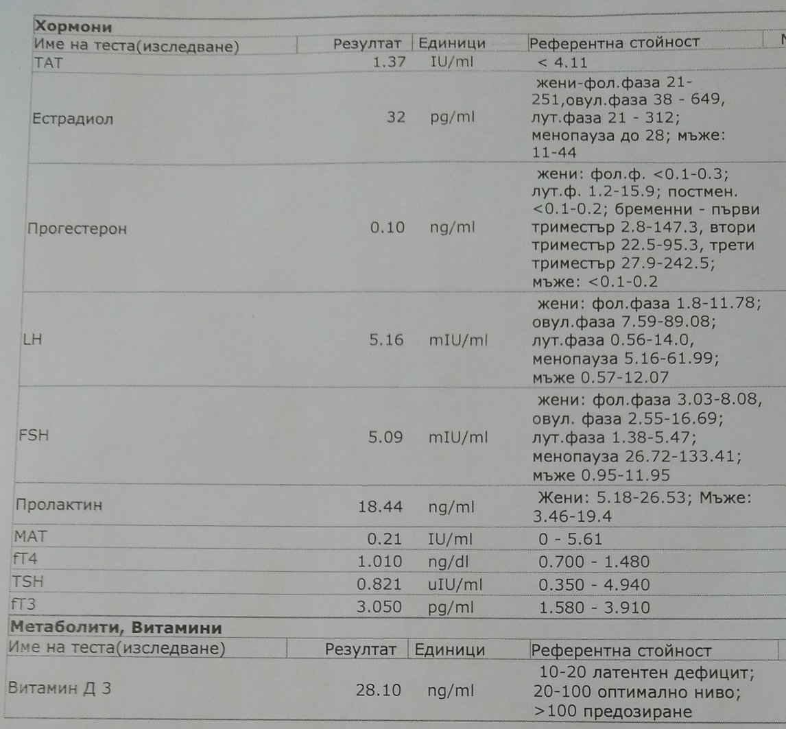 Здравейте, Denis може ли коментар на мойте изследвания? Четвърти ден от МЦ. Правим опити за бебе. Пия вит Д повече от година, но не се е покачил особено.