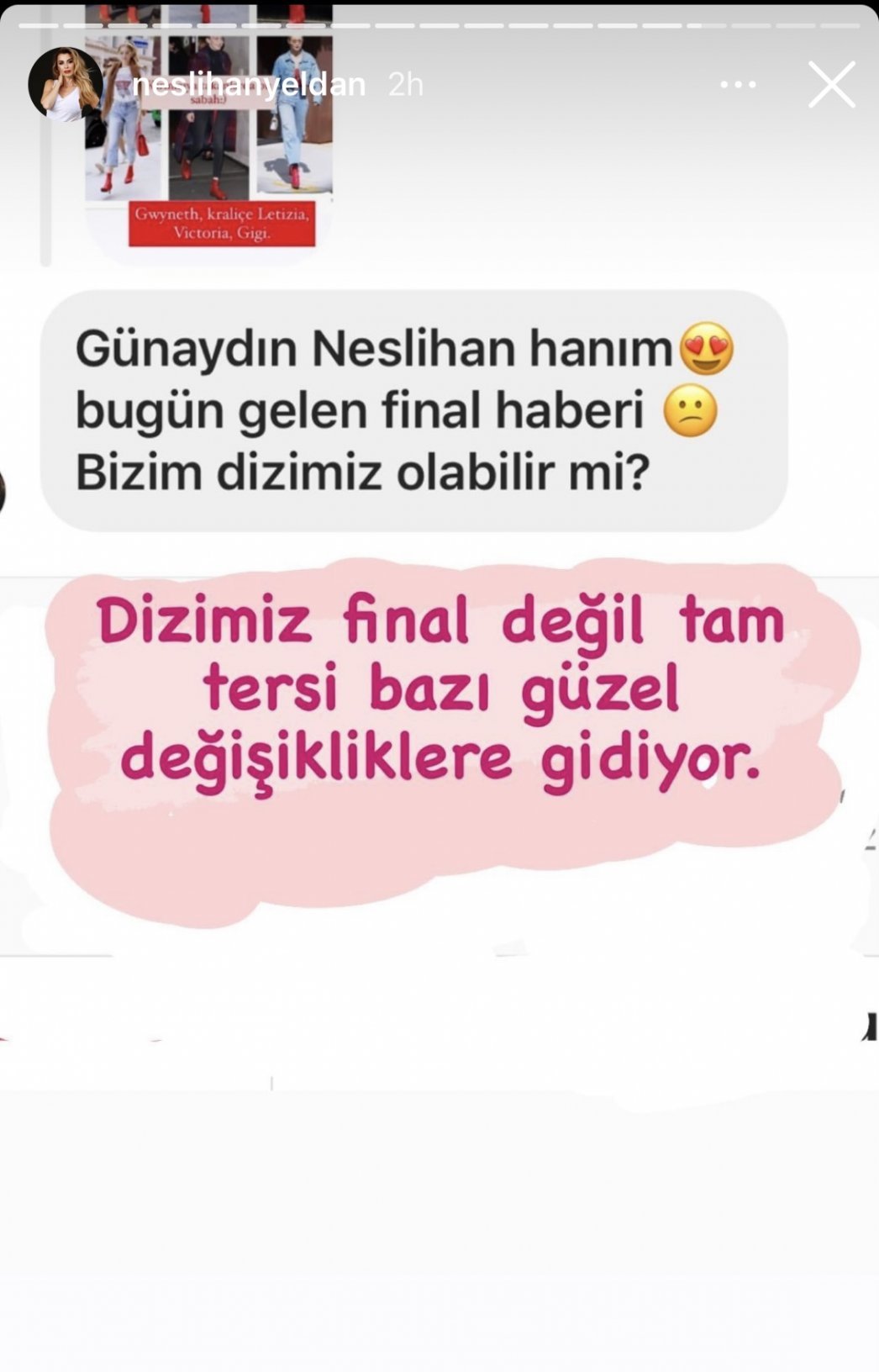 Въпрос към Неслихан : Здравейте, г-жо Неслихан новините, които излизат за финал на сериала ни реални ли са.