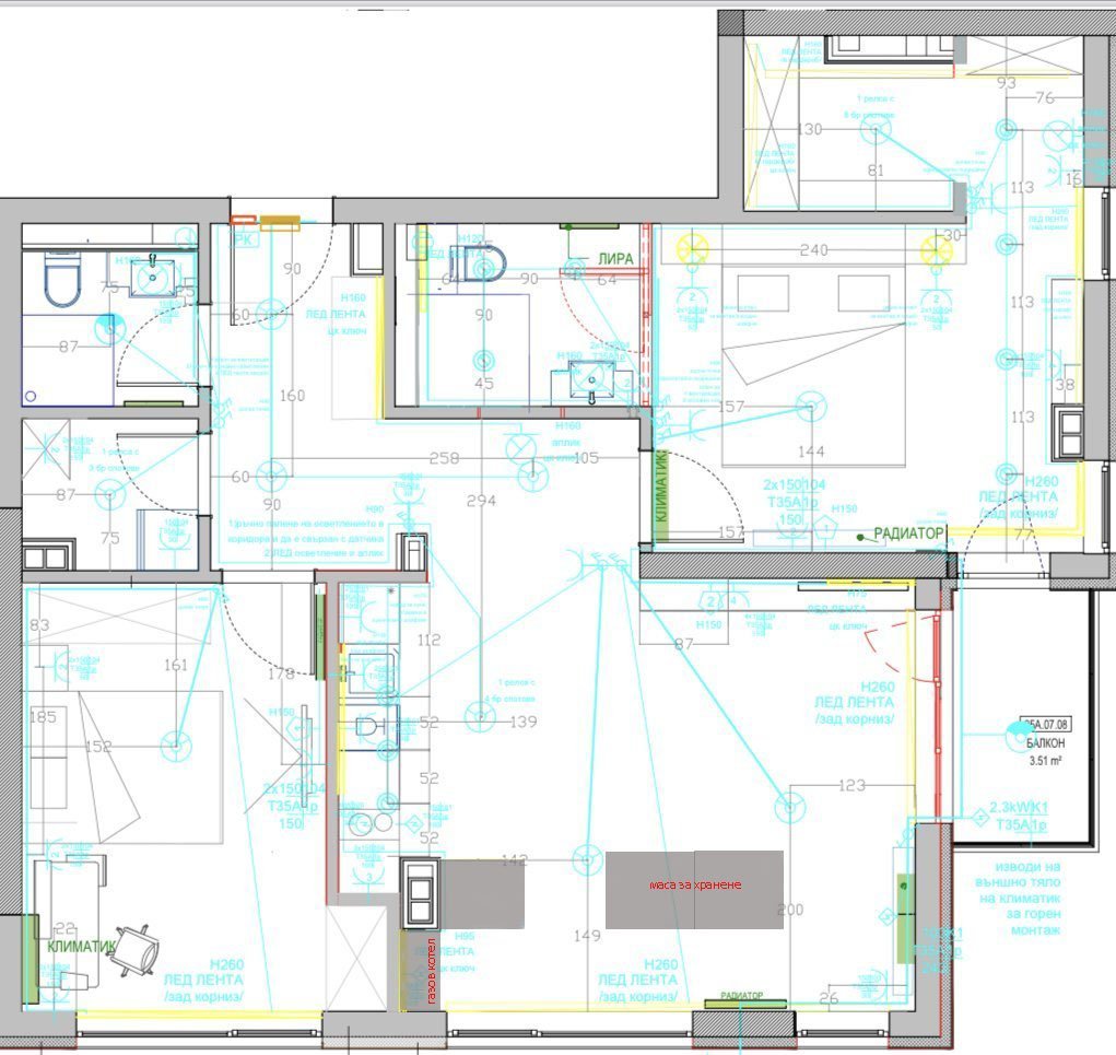Радиатора не съм го видяла, но вдясно е климатик, а от прозореца со остават поне 40см... но стана ясно, че е цяла врата-хармоника та не става Hands V