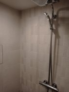 Дрмата ми е какъв да е цвета на дългата стена в дясно от душа (на чертежа е наполовина в бяло / наполовина в синьо). Ако е в бяло се опасявам, че банята ще стане леко "стерилна", а ако е в музайка - прекалено шарена.
