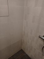 Заповядай един ъгъл с два вида бели плочки 40/90 наредени хоризонтално, под 60/60,