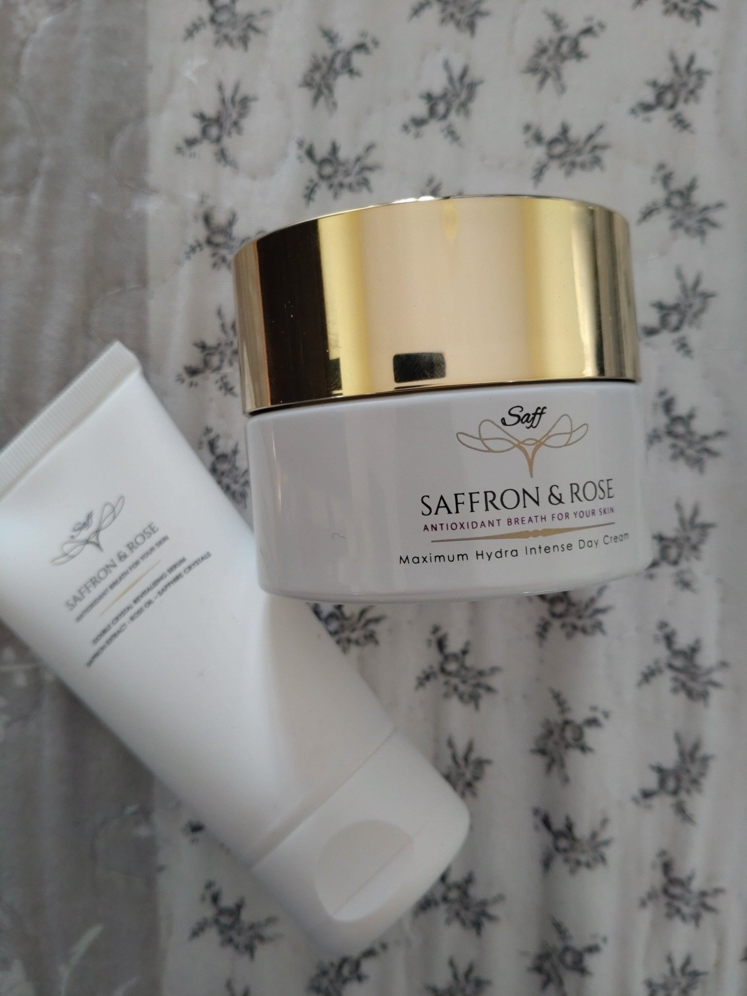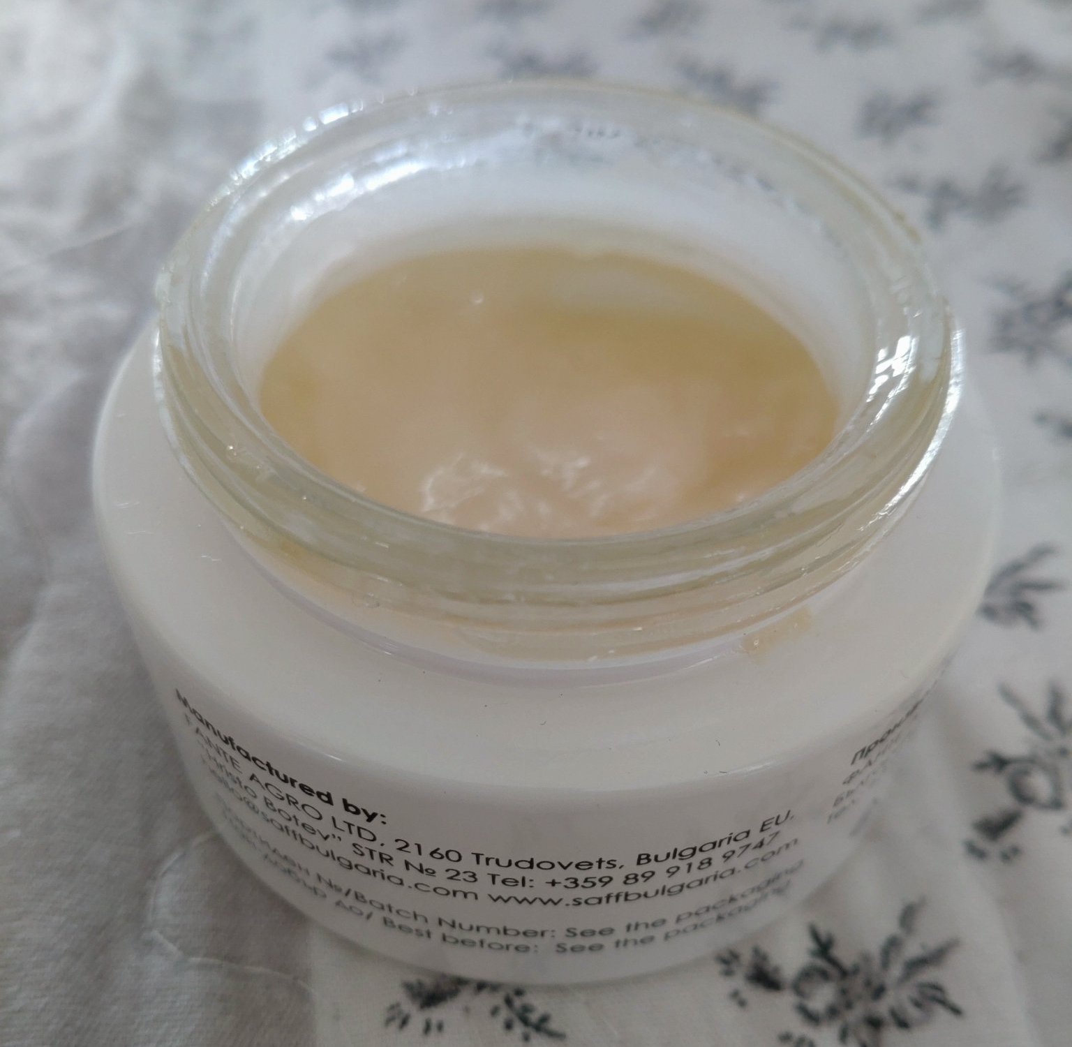 Разменям дневен крем за лице Saff(количеството се вижда,използван с дървена шпатула) ,както и Revatilizing serum Double crystal ,rose oil на Saff(почти нов)