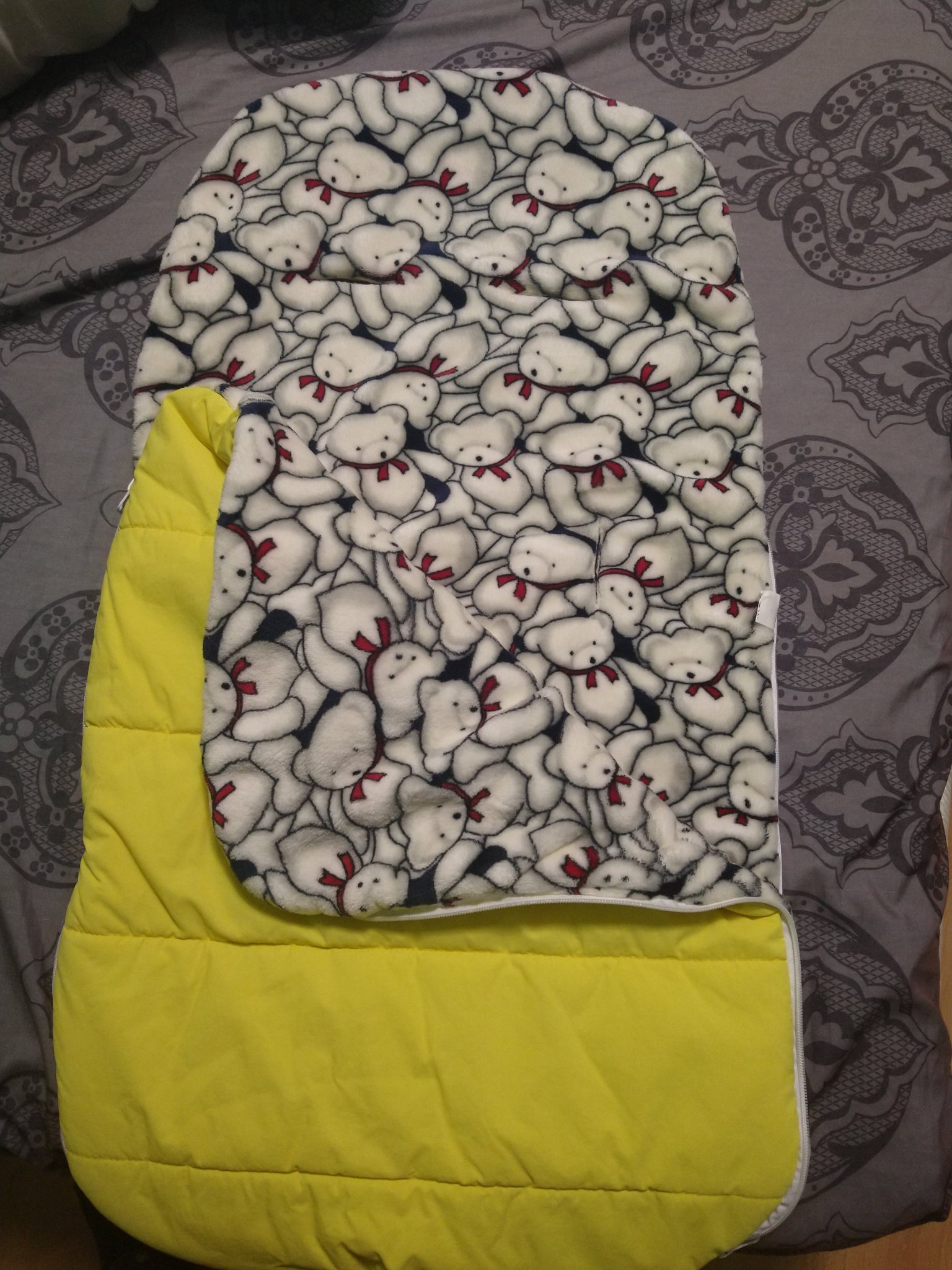като го видях това жълтичко и не се стърпях. По принцип е за количка, но мисля че може без проблем да го ползваме при изписването за допълнително, че нашето одеяло от комплекта е тънко.