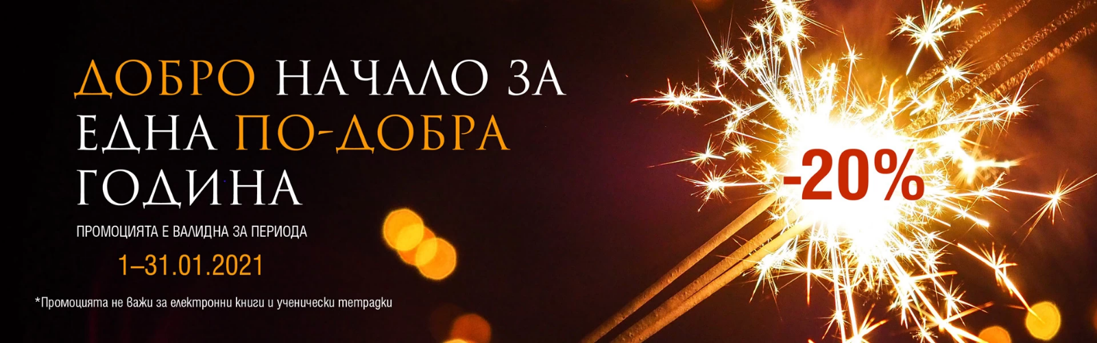 Продължаваме в 2021 специалното ни предложение за поръчки от е-книжарницата на Жанет 45: 20% + 5% за всички книги до 21.01.2021 г.