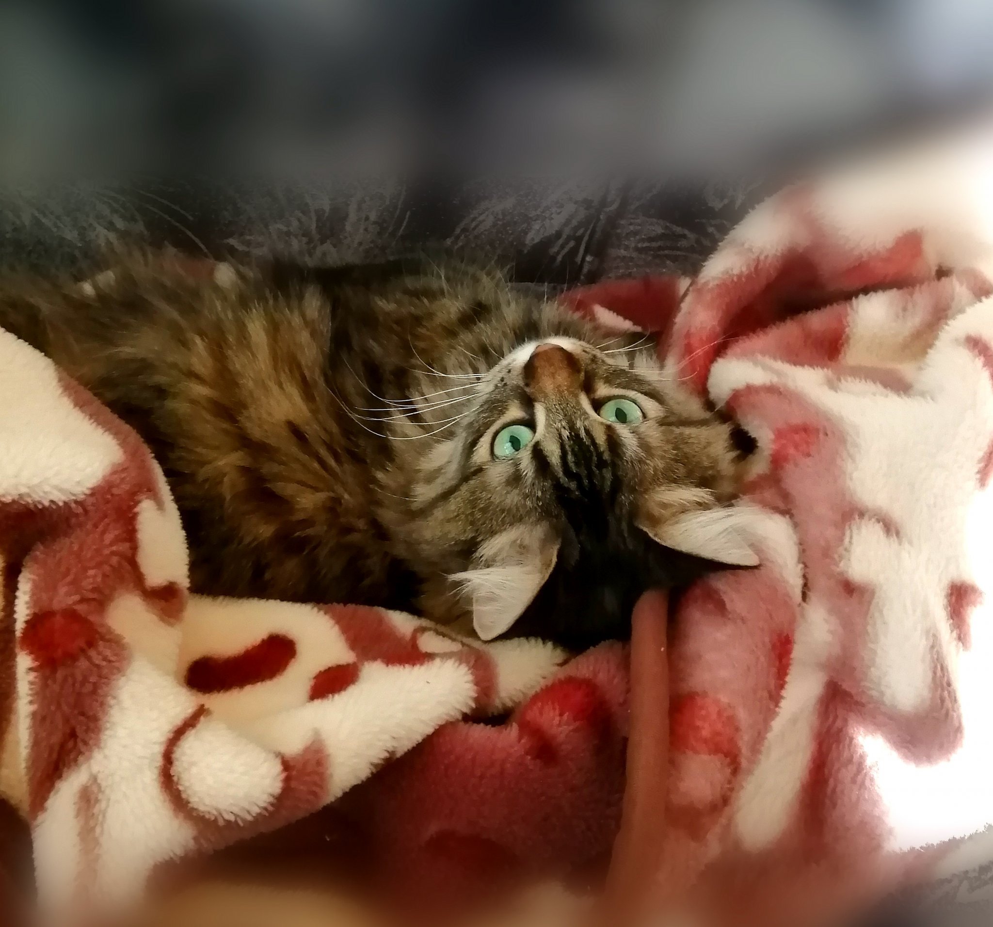 А ето го и нашето котенце. ММ го прибра от улицата миналата Коледа.