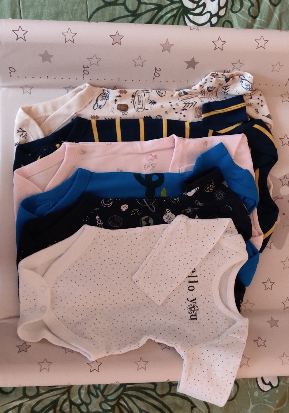 Имам бодита и ромпъри от следващия размер - 6-9м. Ако искаш мога да ги измеря като дължина, или да ти снимам наложени двата размера да видиш колко е разликата.