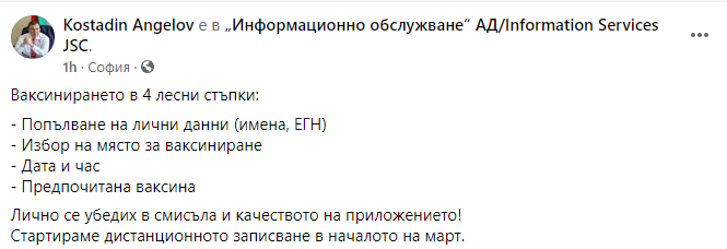 Много благодаря за полезната информация. Точно това чаках да разбера. Аз лично ще се запиша през приложението, за да си избера ваксина. Дано да има опция да се посочва повече от една