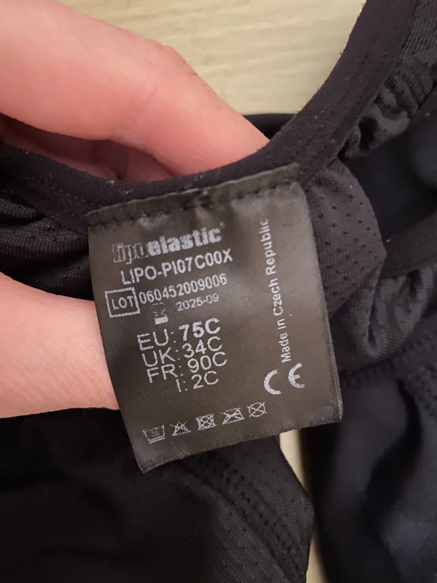 Здравей! Аз бях чашка Б с подгръдна 75, сложих 450сс. Сега не знам още каква чашка съм (предполагам Д), но Липоеластикът ми е М. Докторът ми даде този размер и аз си поръчах после още един, тъй като ми е точен и ми е много удобно с него. Затова и още не съм пробвала нормален сутиен 😁.