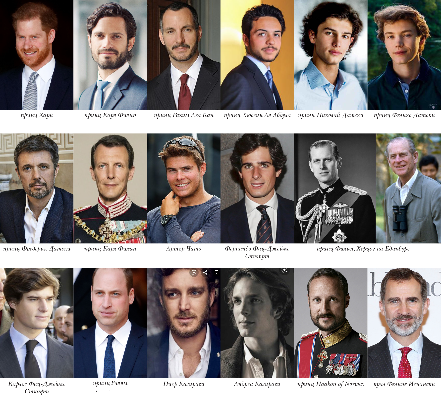 Само с Ф ги харесвам аз - Карл Филип, Фелипе, Фредерик, стария Филип и накрая един Уилям, за цвят.