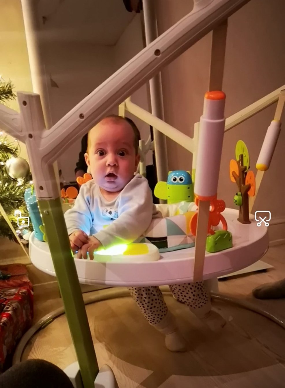 Тази нощ беше един буден и рязговорлииив, мале, мале. Имаше период, в който спеше с отворени очи и говореше. Много сладко бебешко.