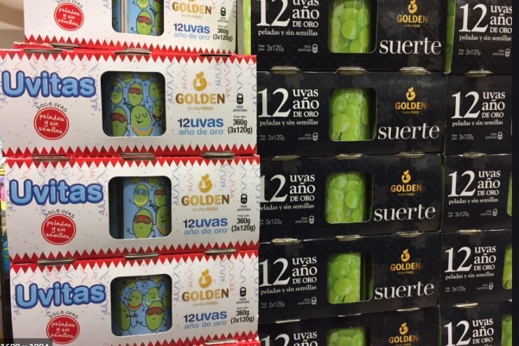 Забравил съм да пиша за 12-те зърната грозде/за 12-те  месеца в Испания, които се ядат точно преди 00:00 часа. започват 12-15 секунди преди 12 часа и има 12 удара по камбаните и на всеки удар се гълта зърно.