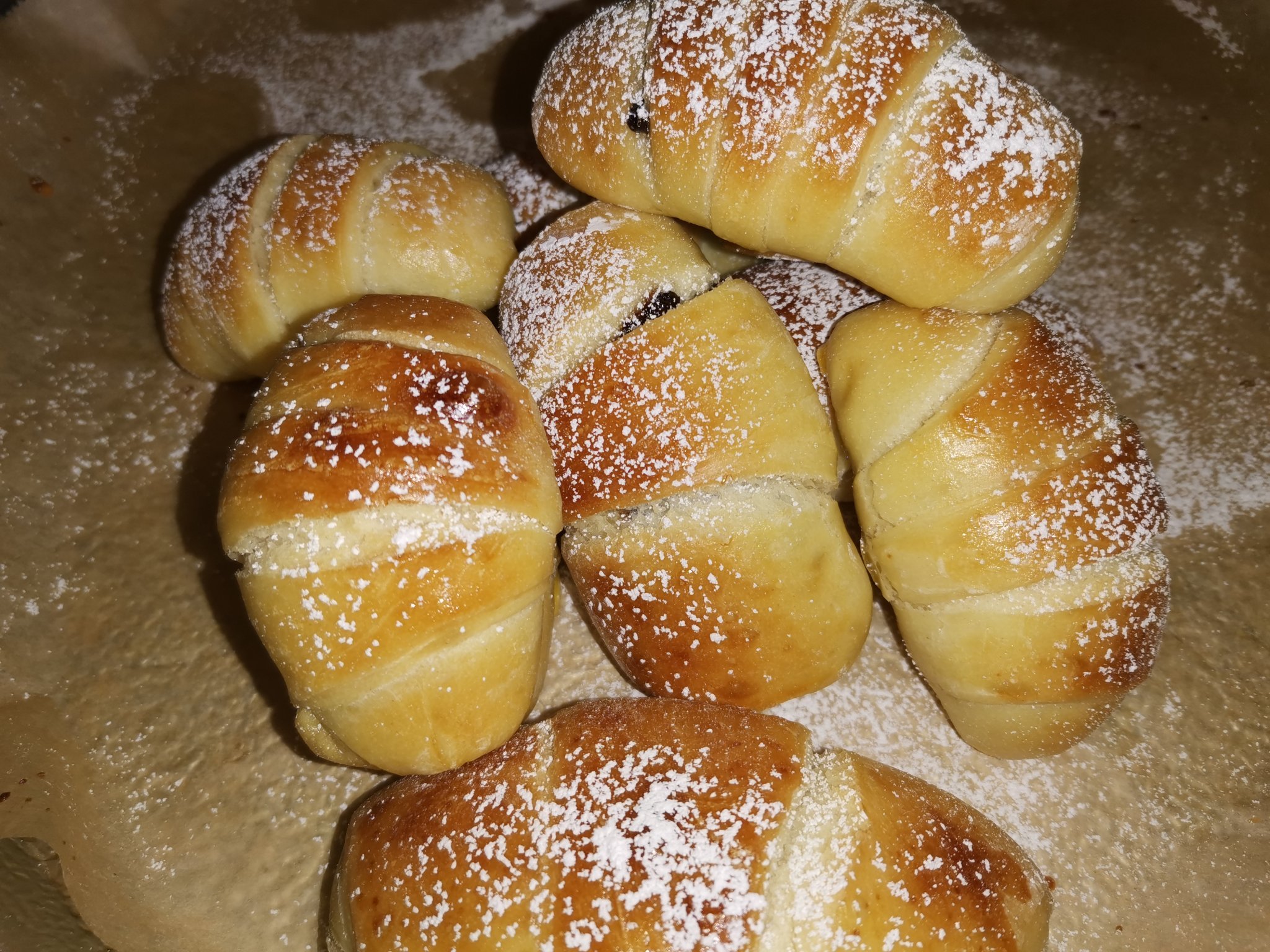 , вчера Бени ги показа и аз днес вече ги спретнах - банички с крем и сушени плодове