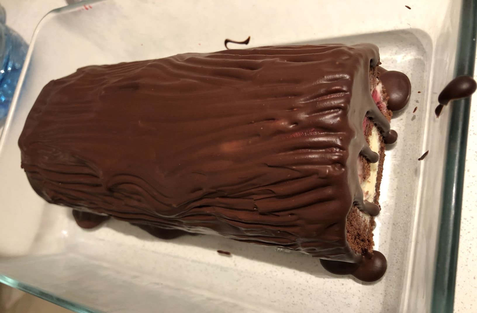 На пънчето при разрязване глазурата се отчупваше доста, не беше залепнал шоколада добре. Някакъв трик дали има как да го "залепя" по-добре шоколада върху самото руло?