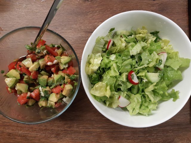 Салата гуакамоле и зелена с репички