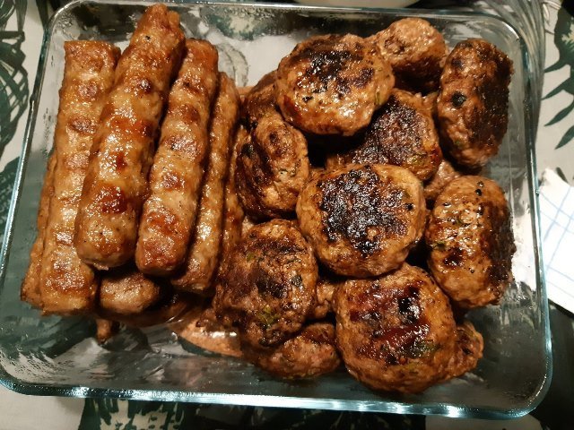 Скара с домашни кюфтета и кебабчета от лидл(не съм очарована, ама на мм му се приядоха)
