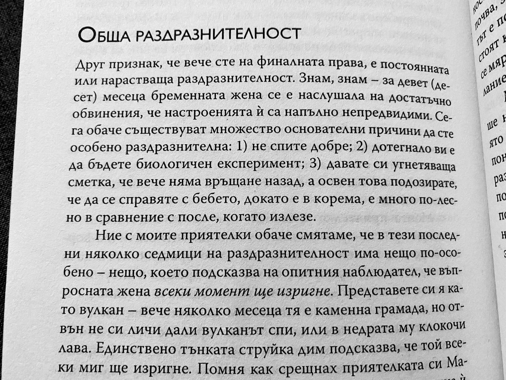 А за всички, на които ни предстои и търсим признаци на започващо раждане, е този абзац от книгата ми. Искрено ме разсмя.